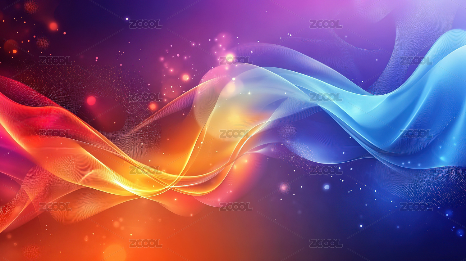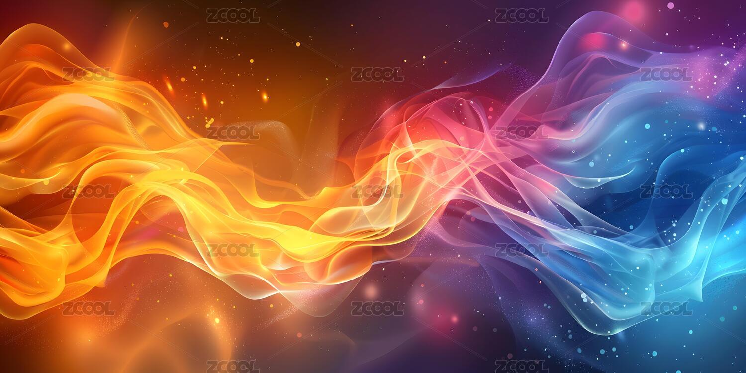 五彩缤纷的抽象发光魔法火焰波浪背景