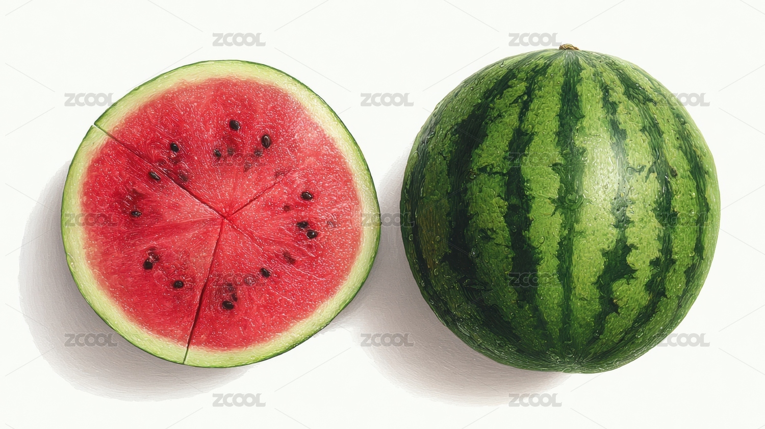 西瓜与切片的对比展示