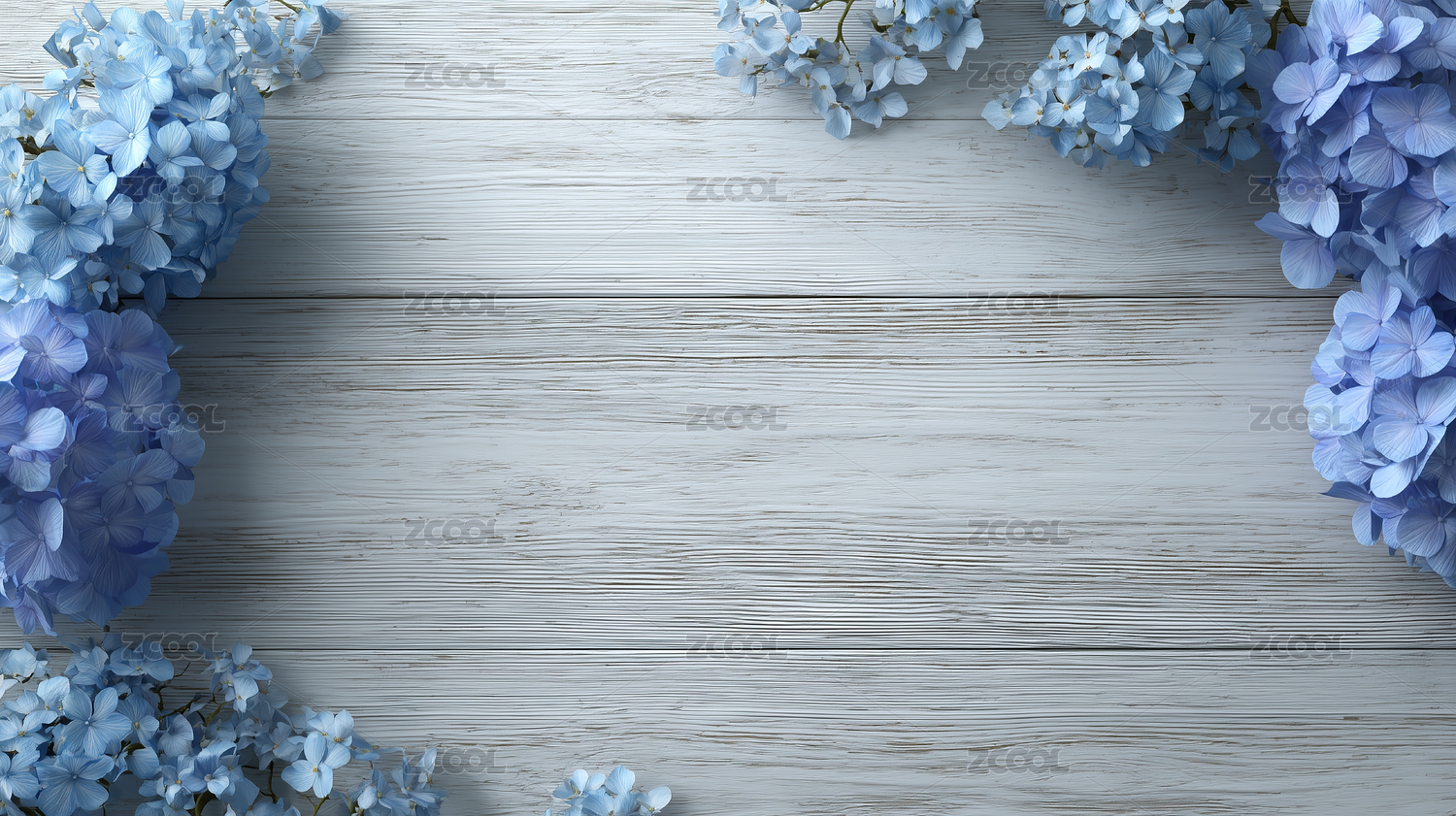 花艺,平铺,优雅,背景,木板,灰色,纹理,绣球,花朵,角落