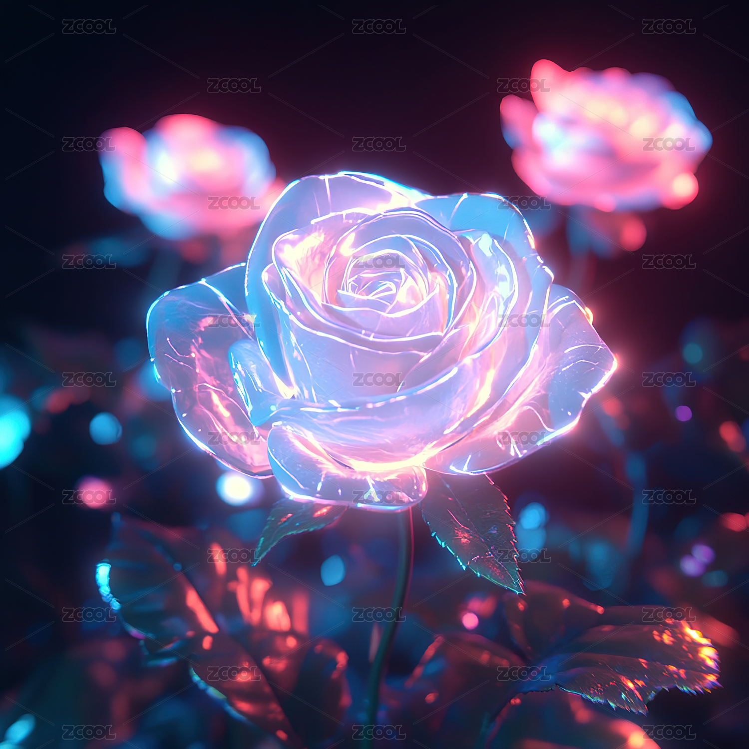 一朵发光的半透明玫瑰花