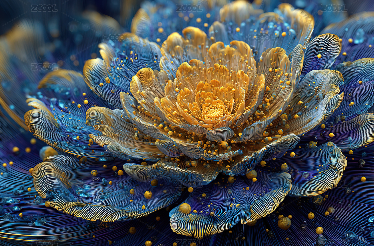 花卉,金属,华丽,棱镜,花瓣,光芒,蓝绿,品红,水珠,钻石