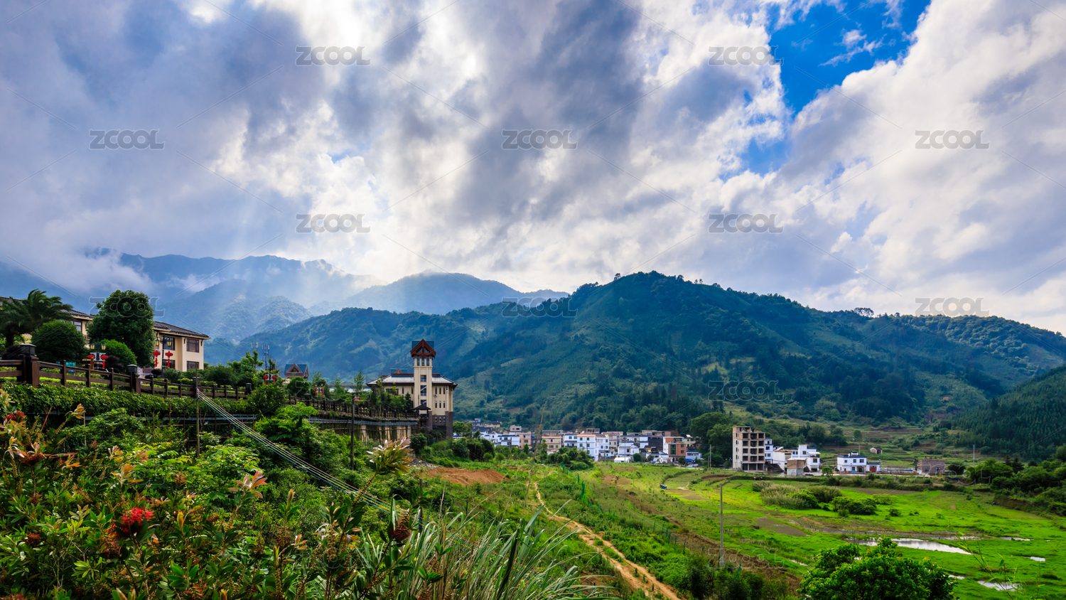 四川宜宾山长宁双河镇蓝天白云山脉自然风光