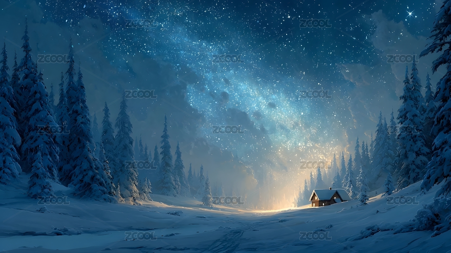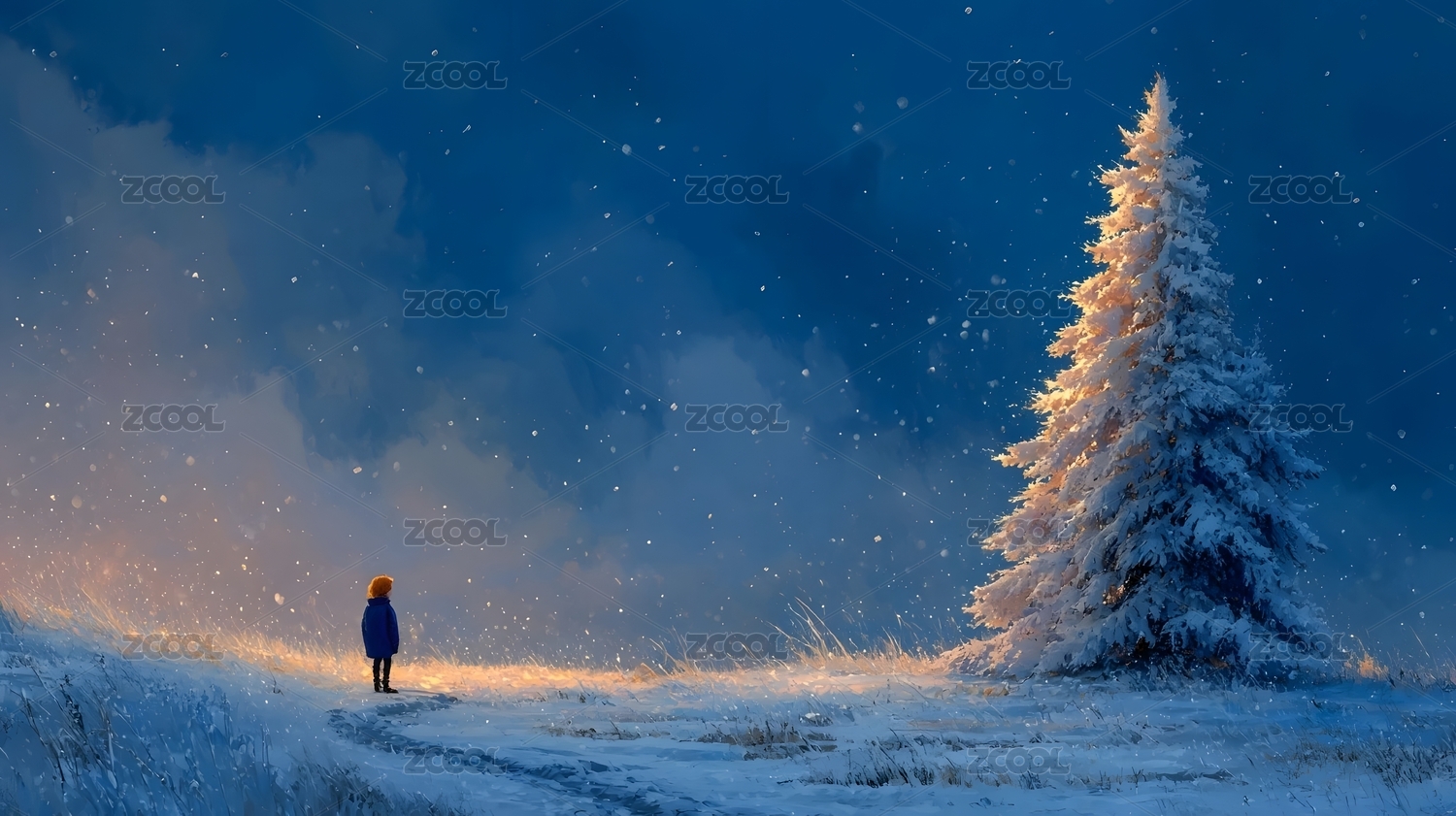 金色,自然,冬日,夜晚,光,人物,夜色,树木,星点,夜空