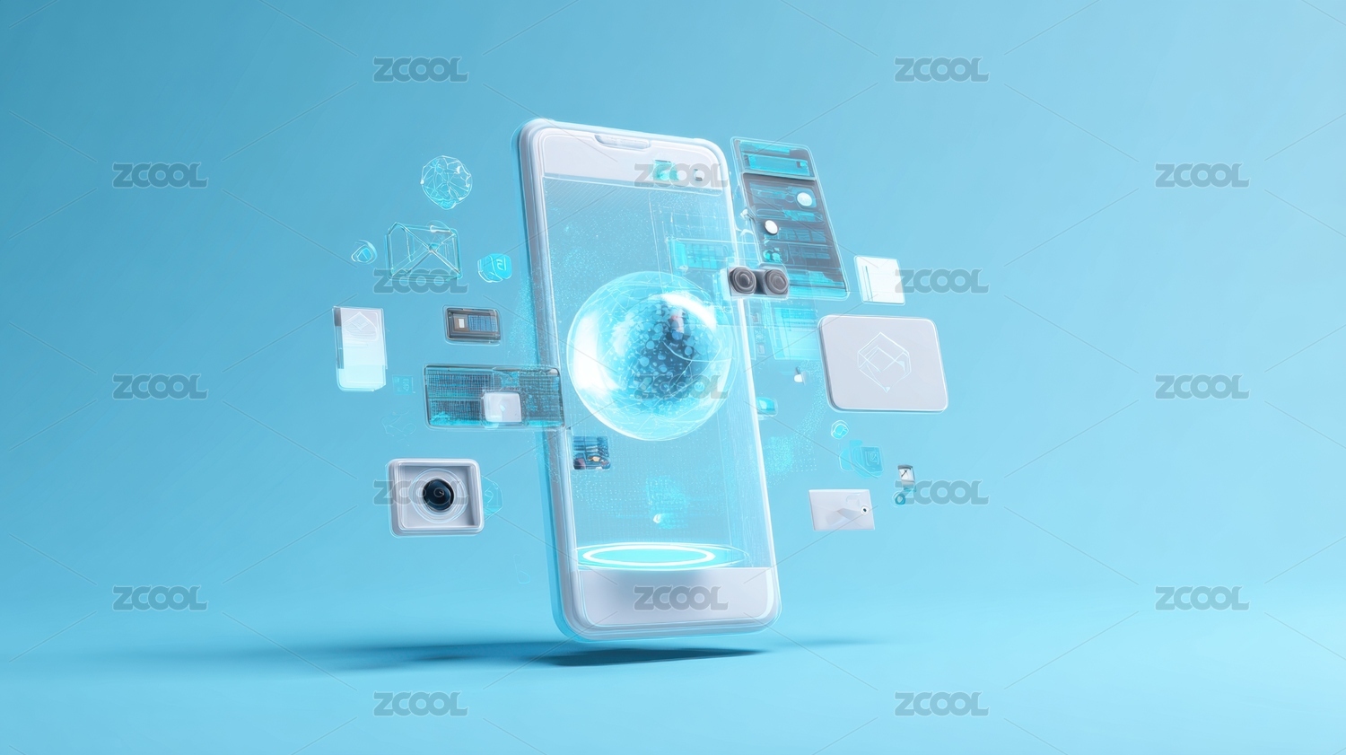 智能手机与数据元素悬浮展示