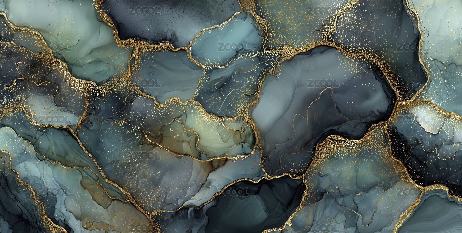 青绿色与金色线条大理石纹理