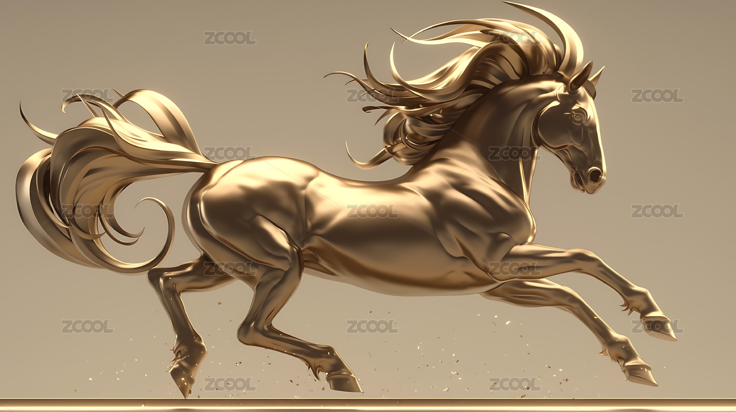 马,雕塑,金色,奔跑,艺术,金属,光泽,动感,优雅,力量