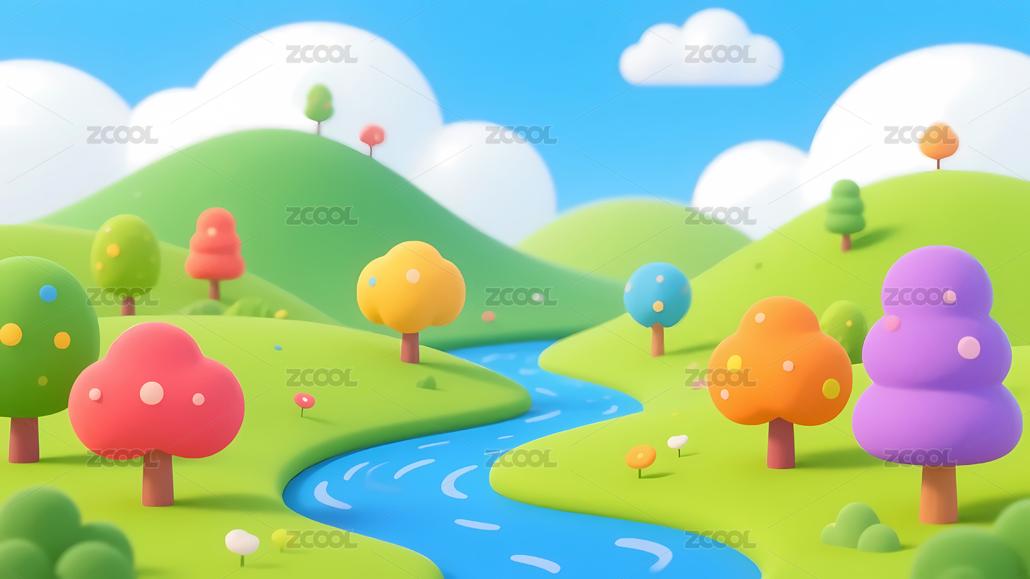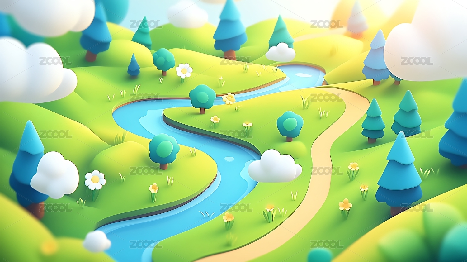 3D,卡通,场景,风景,自然,植物,绿色,清新