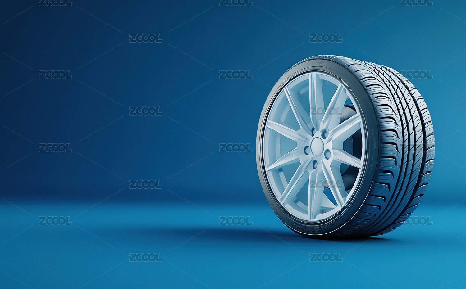 蓝色背景下轮胎的特写镜头