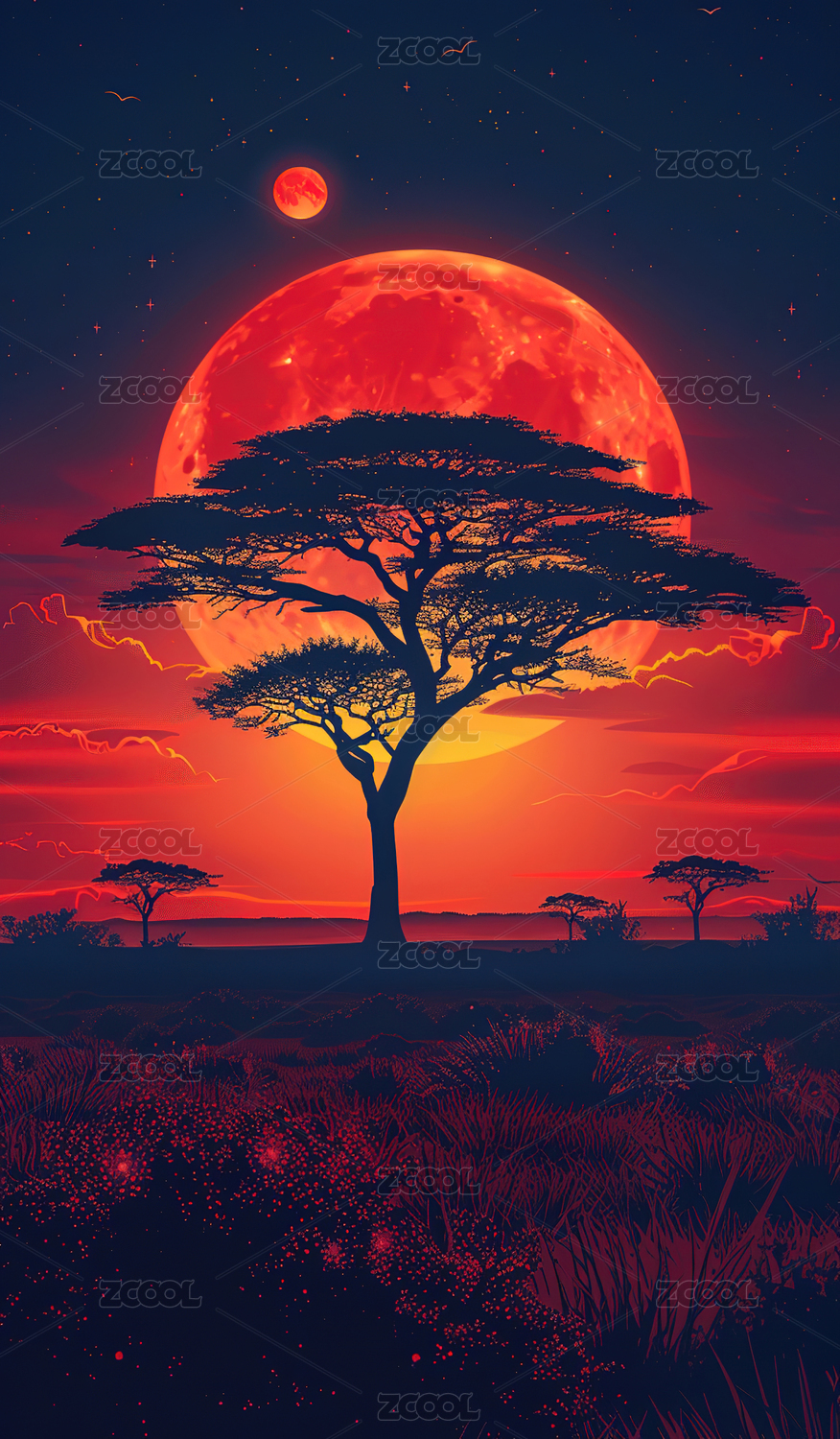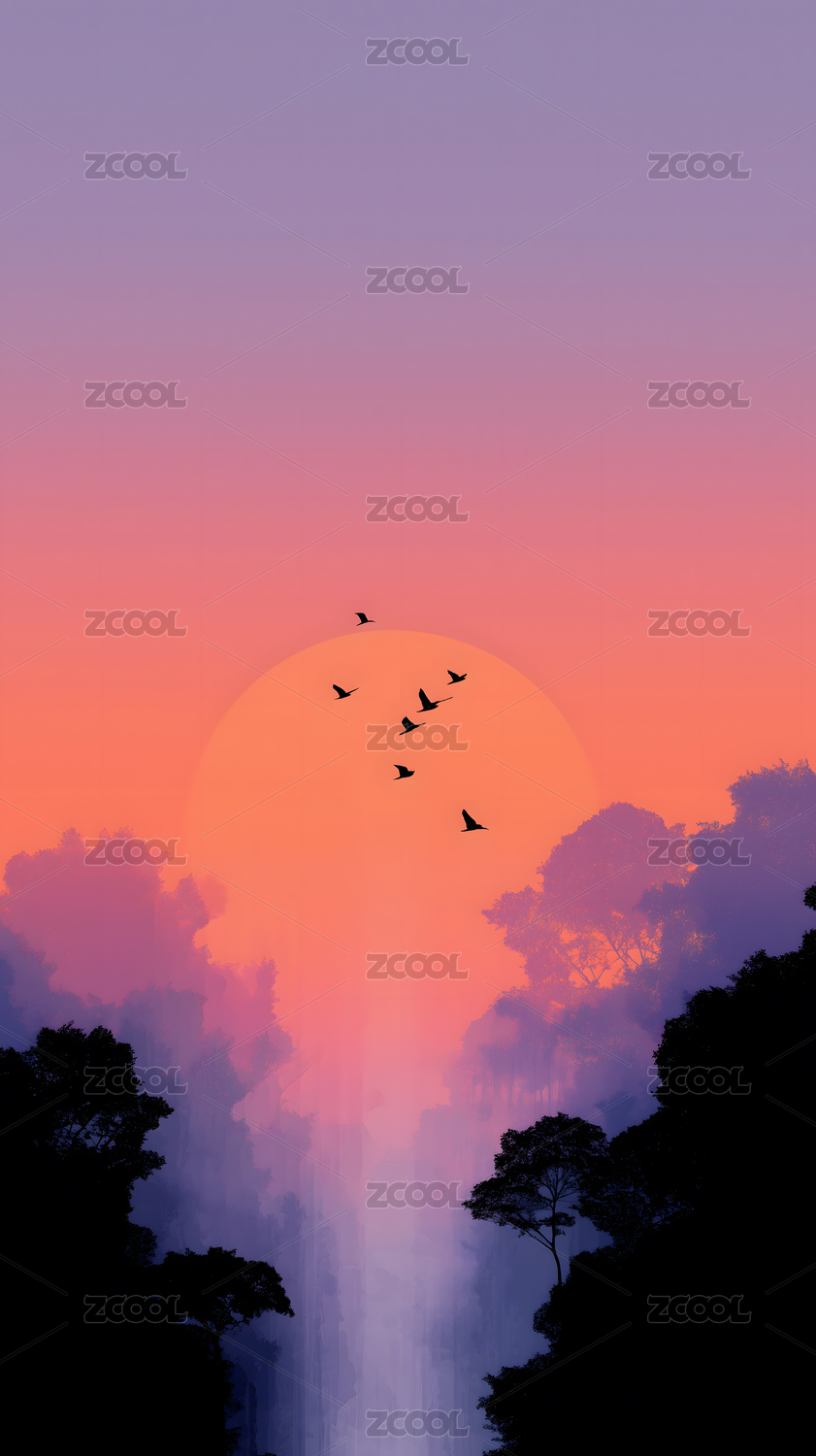 天空,风景,树木,自然,宁静,意境,光影,美丽,夕阳,紫色