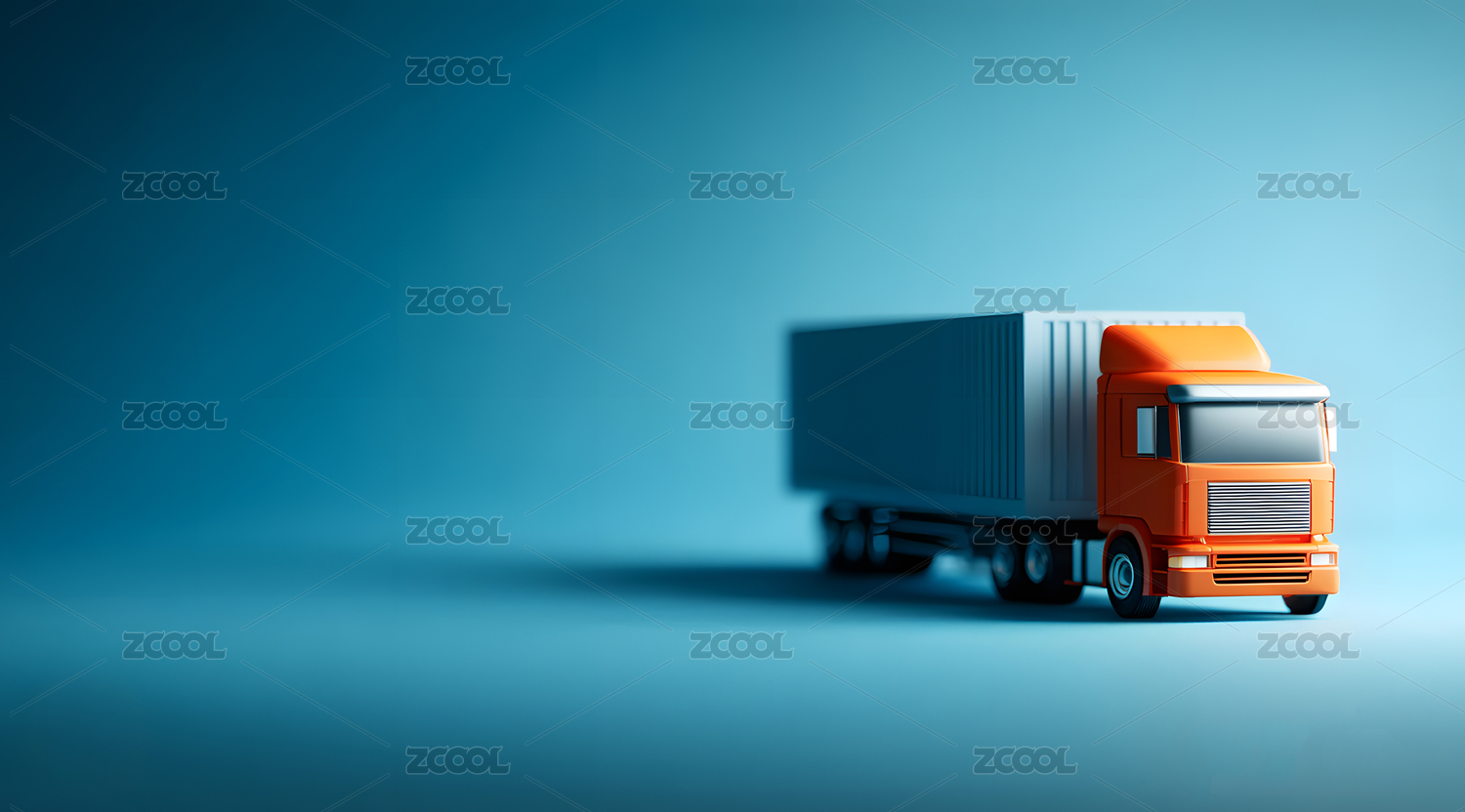 蓝色背景下的橙色货运卡车