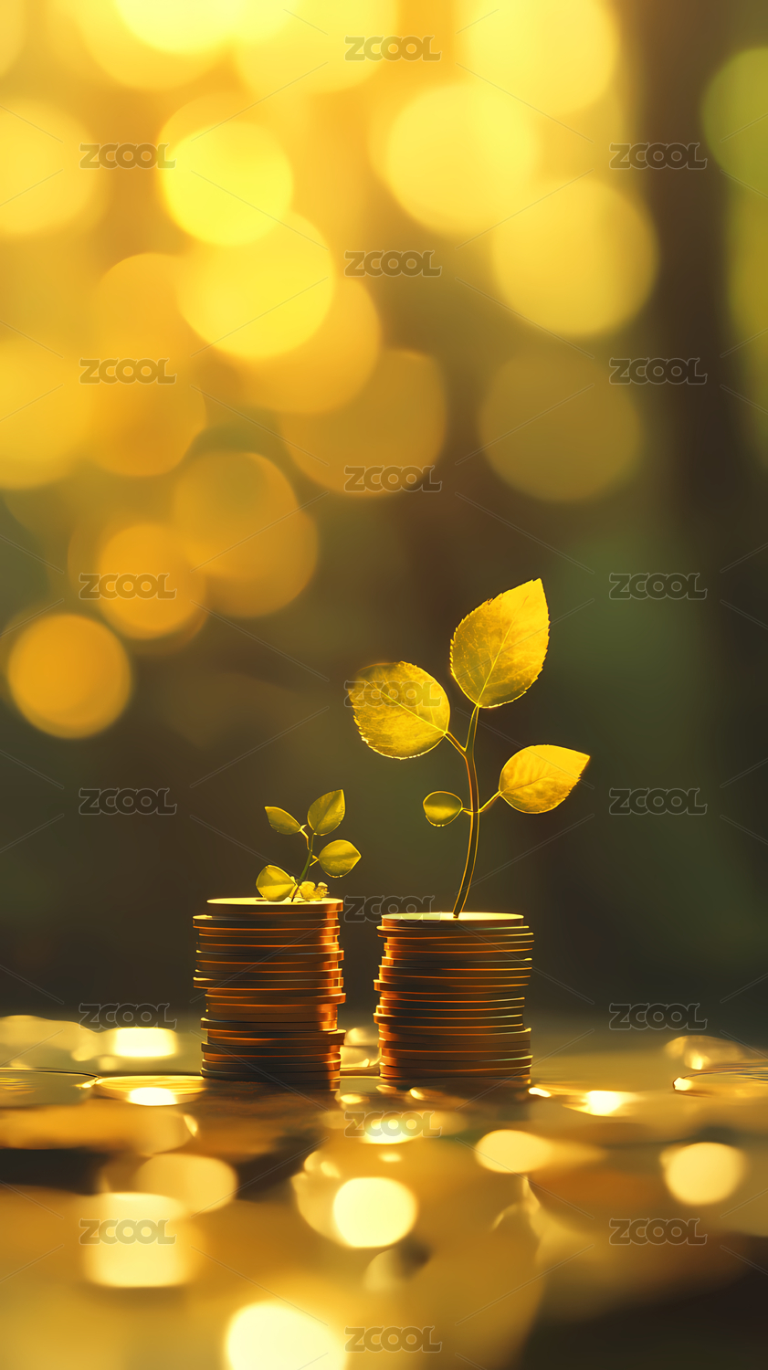 幼苗破土而出,象征财富增长
