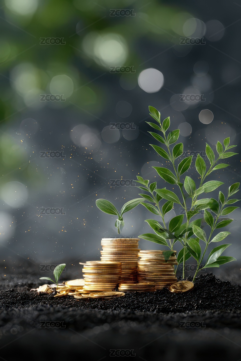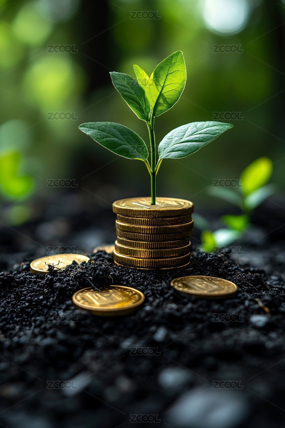 幼苗破土而出金钱堆积