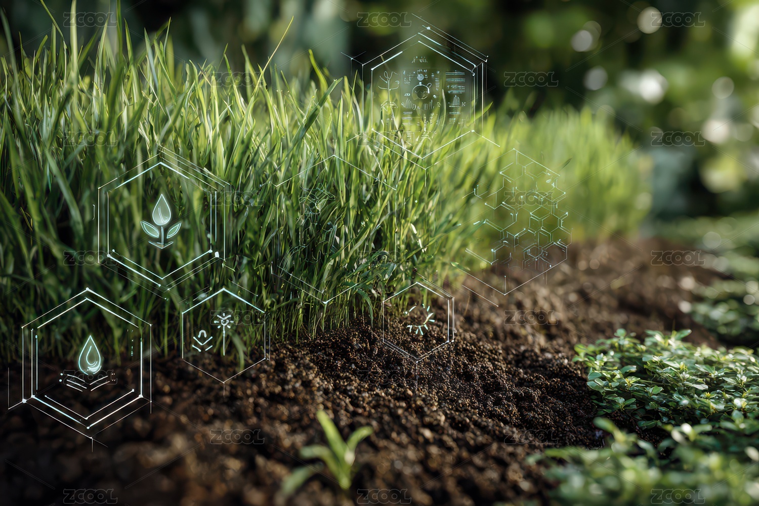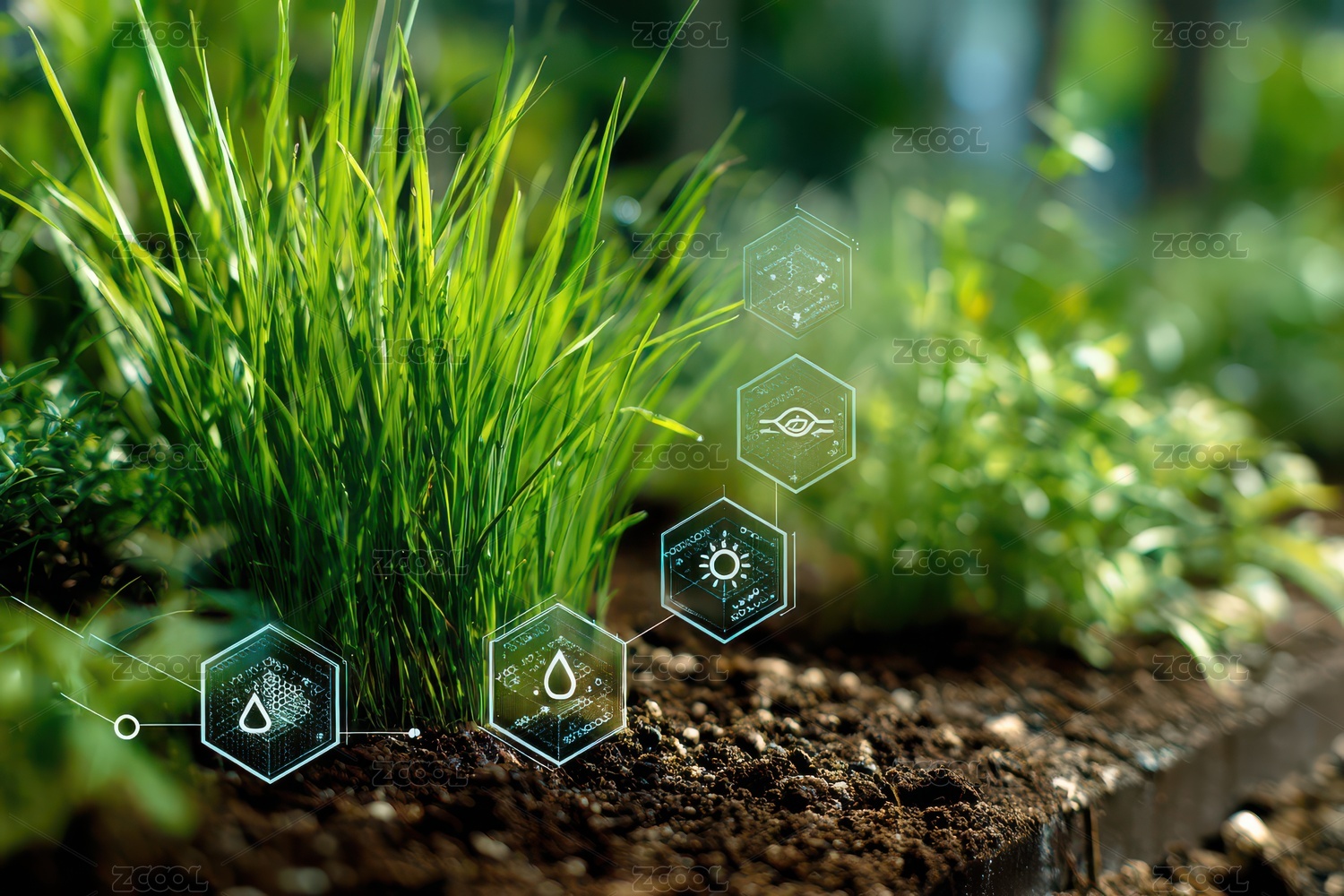 科技,未来,阳光,植物,土壤,六边形,图标,生长