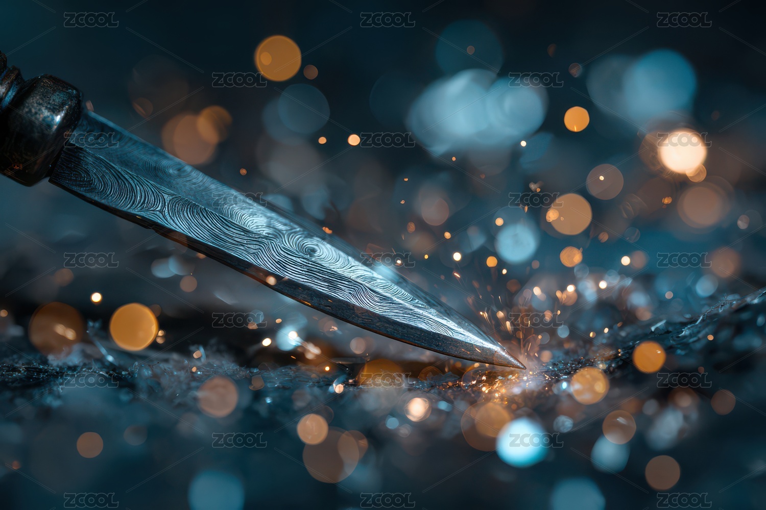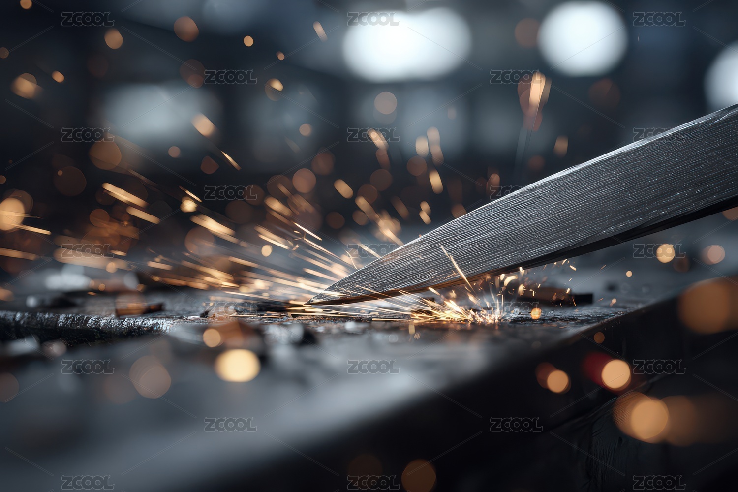 尖锐刀刃与火花四溅的工艺场景
