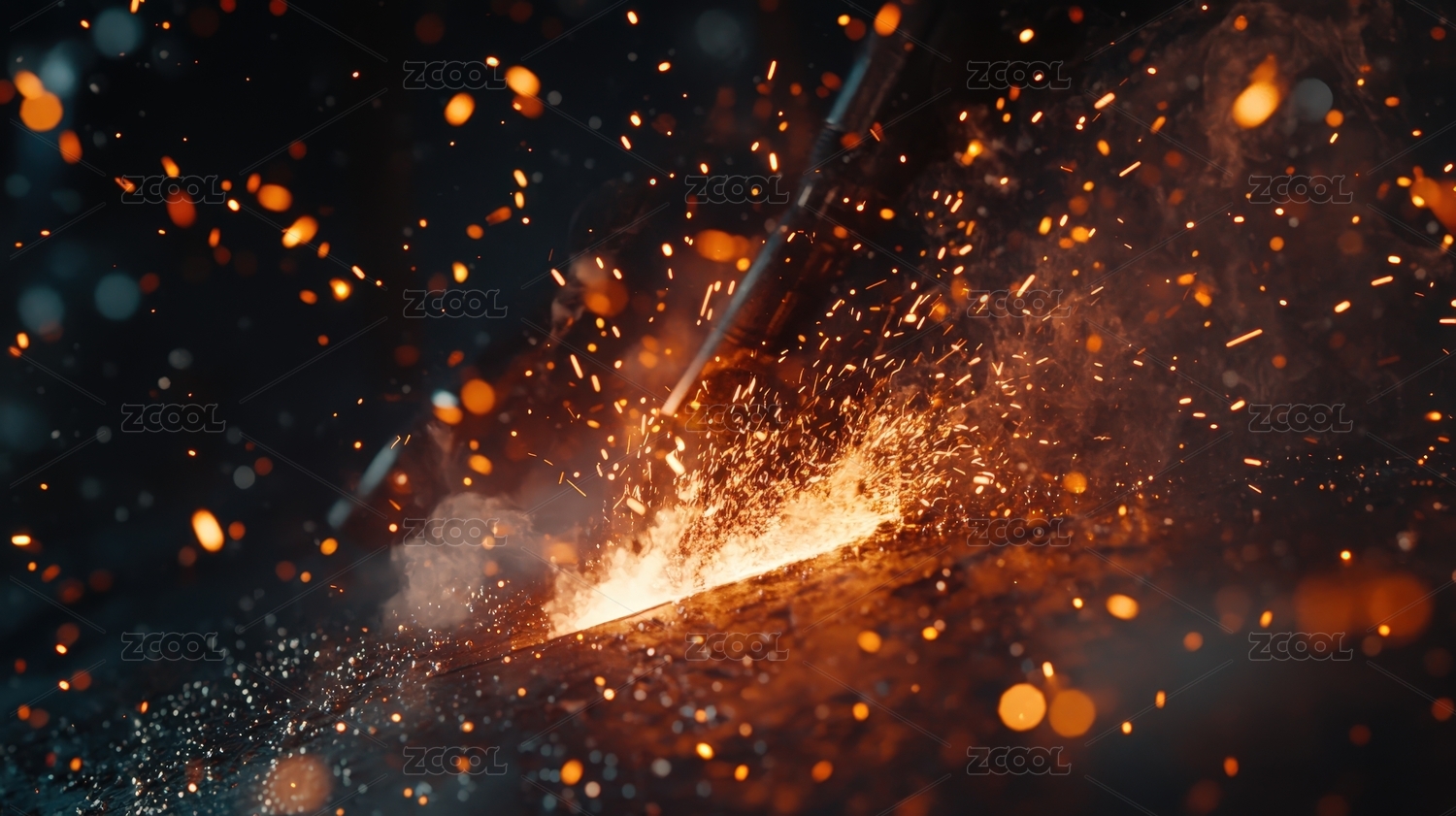 金属切割火花飞溅的工业场景