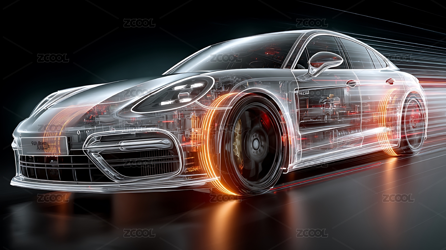 汽车,透明,发光,科技,3D,模型,跑车,线条,橙色,蓝色