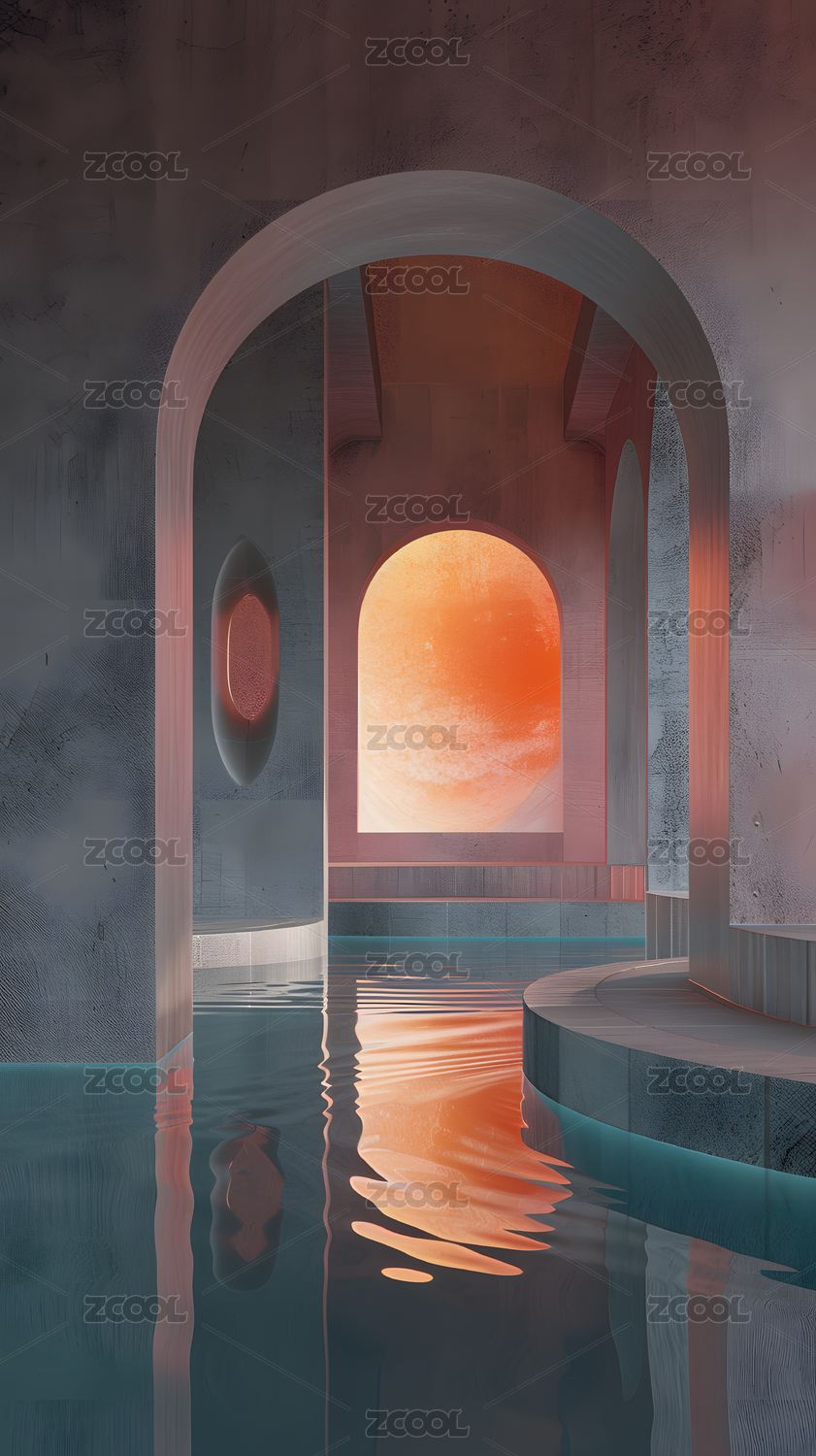 粉嫩泳池与拱形建筑