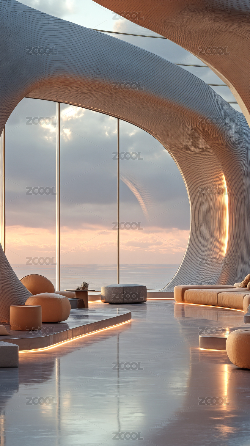 未来科技感明亮大气流线型商业空间