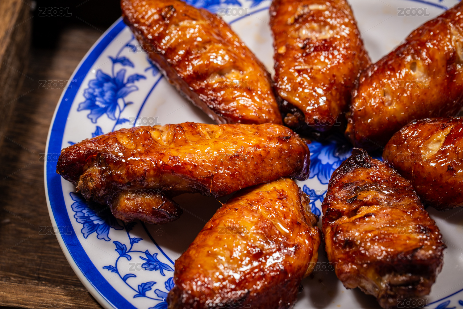 桌上盘子里的蜜制酱烤香骨鸡