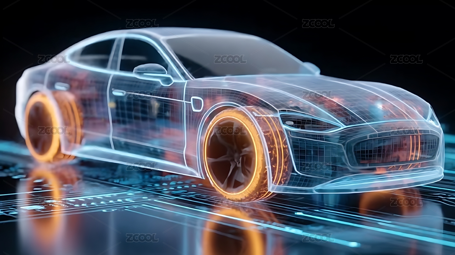 汽车,透明,发光,科技,3D,模型,跑车,线条,橙色,蓝色