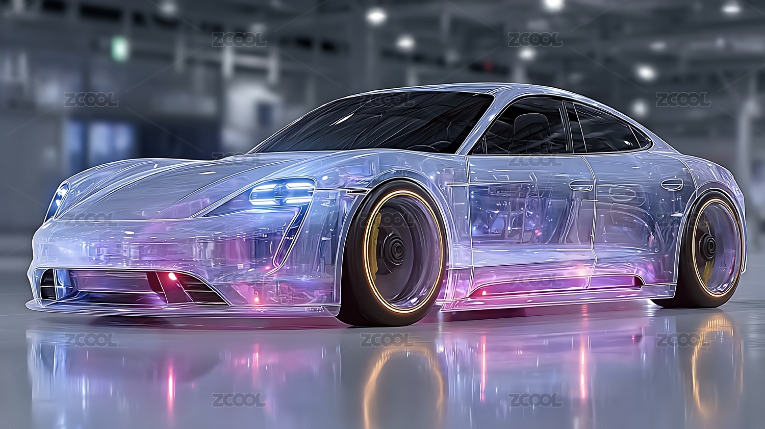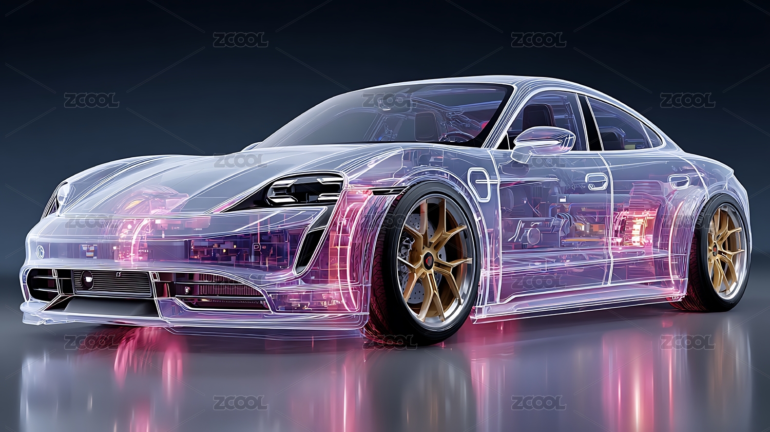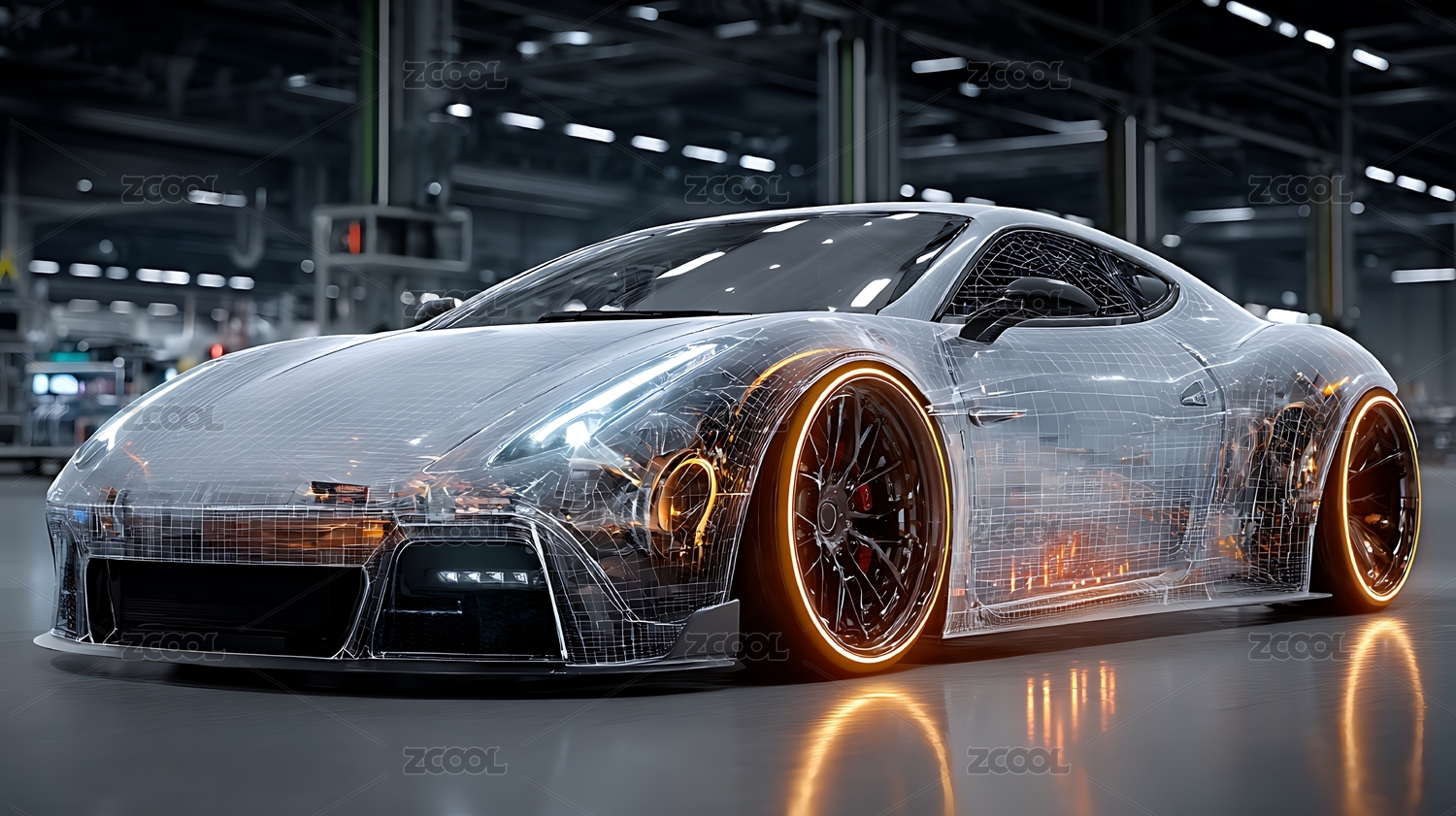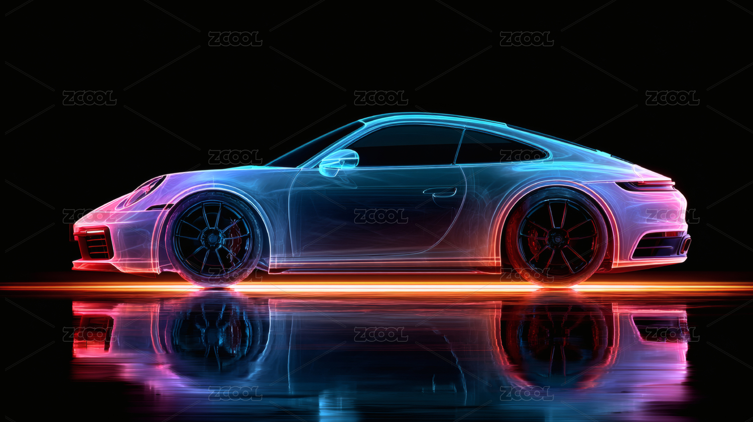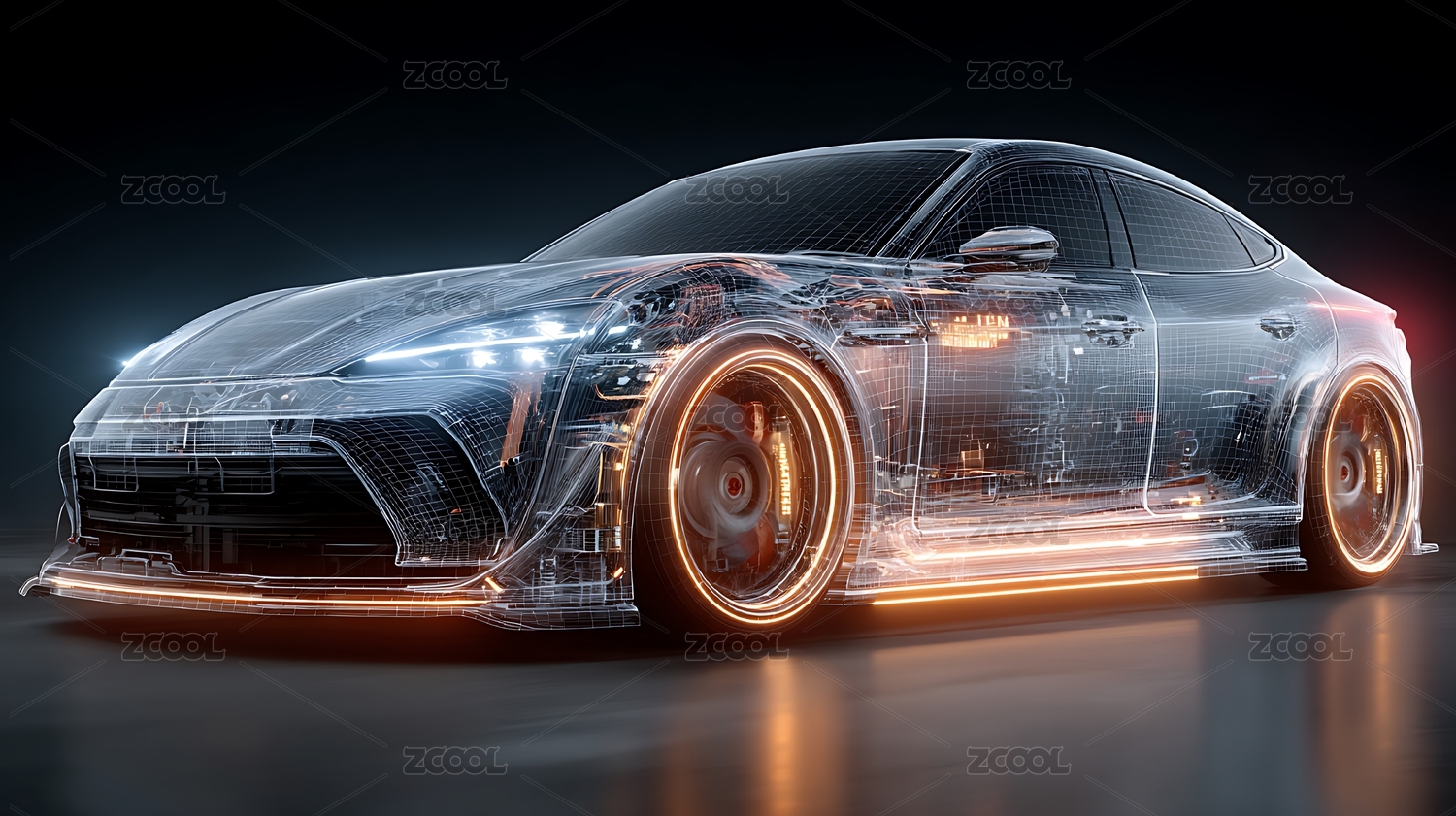 汽车,透明,发光,科技,3D,模型,跑车,线条,橙色,蓝色
