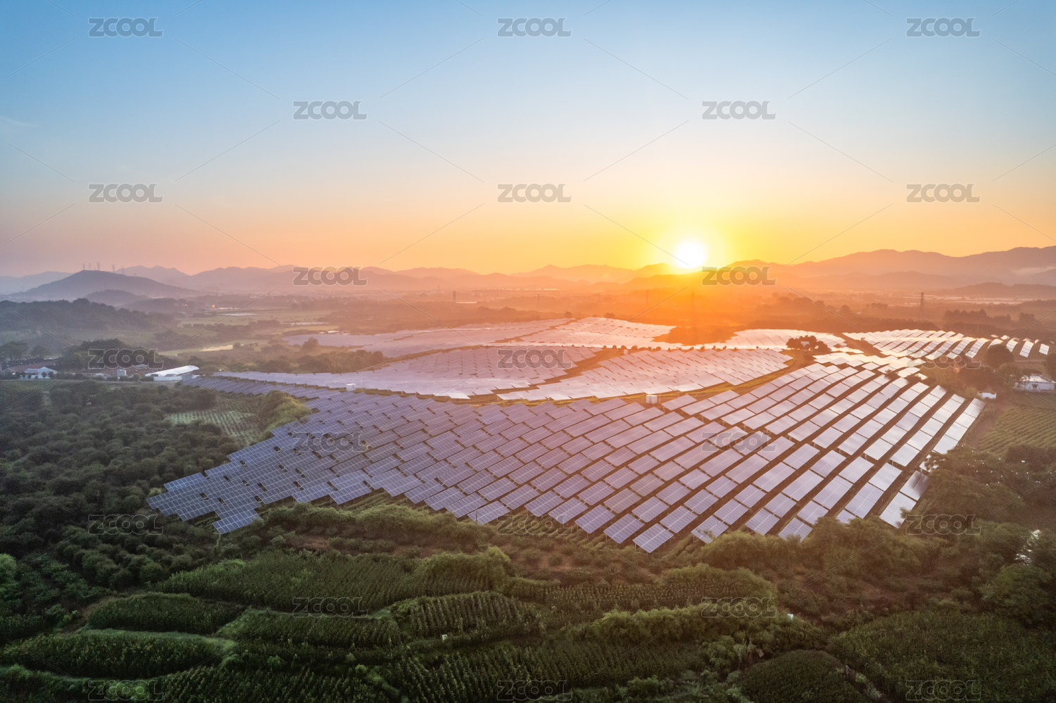 太阳能板,山脉,田野,能源,环保,发电,黄昏,光伏,新能源,绿色