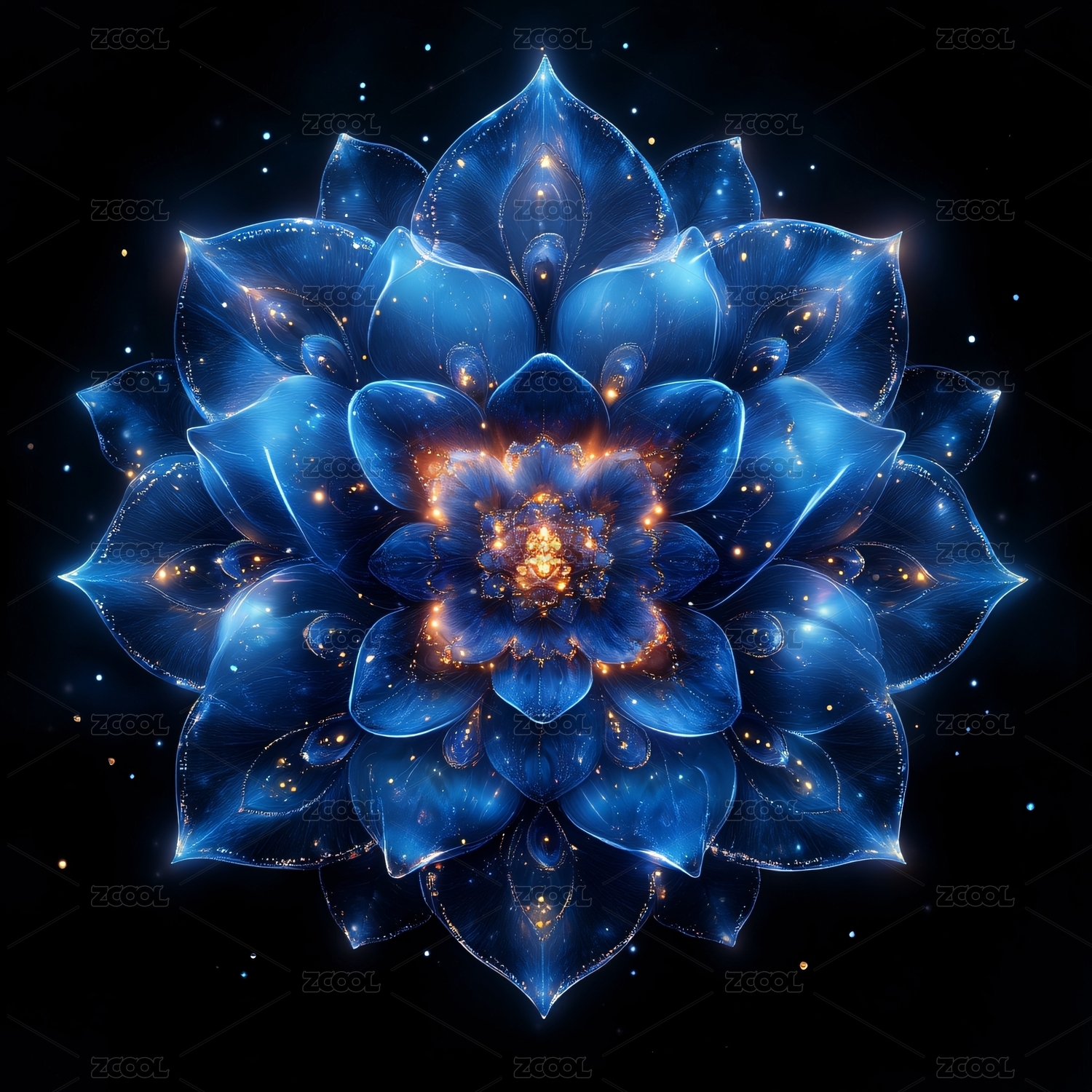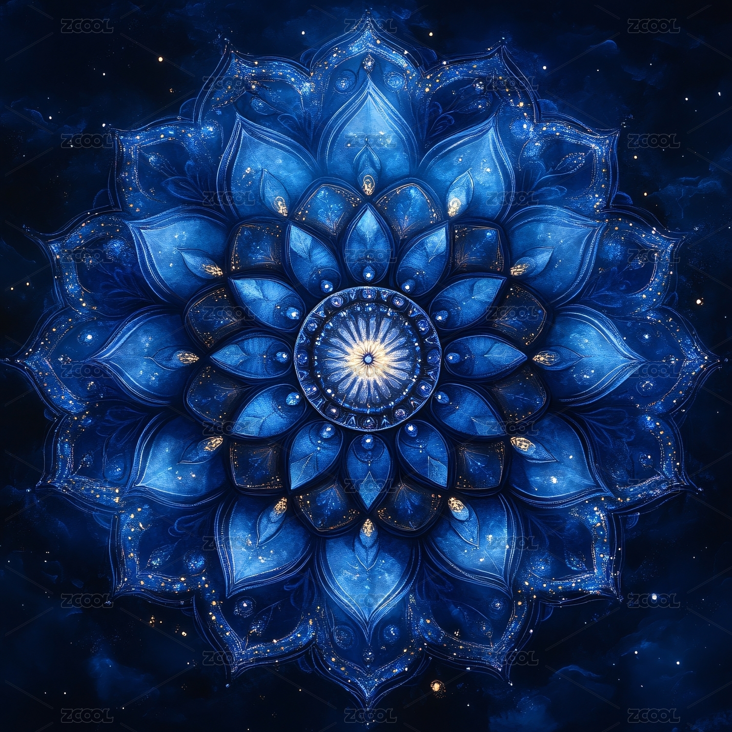 蓝色璀璨梦幻曼陀罗图案
