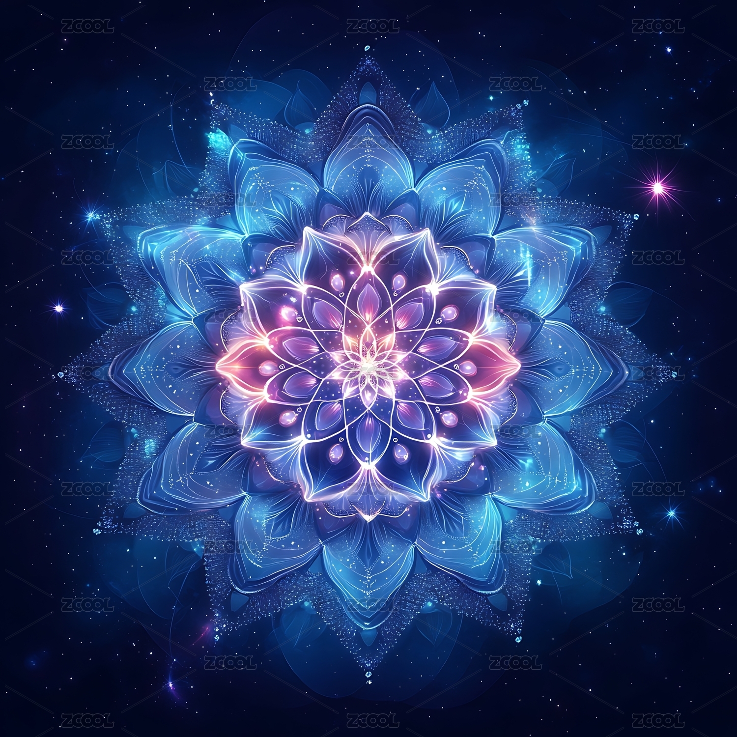 蓝色发光曼陀罗花图案