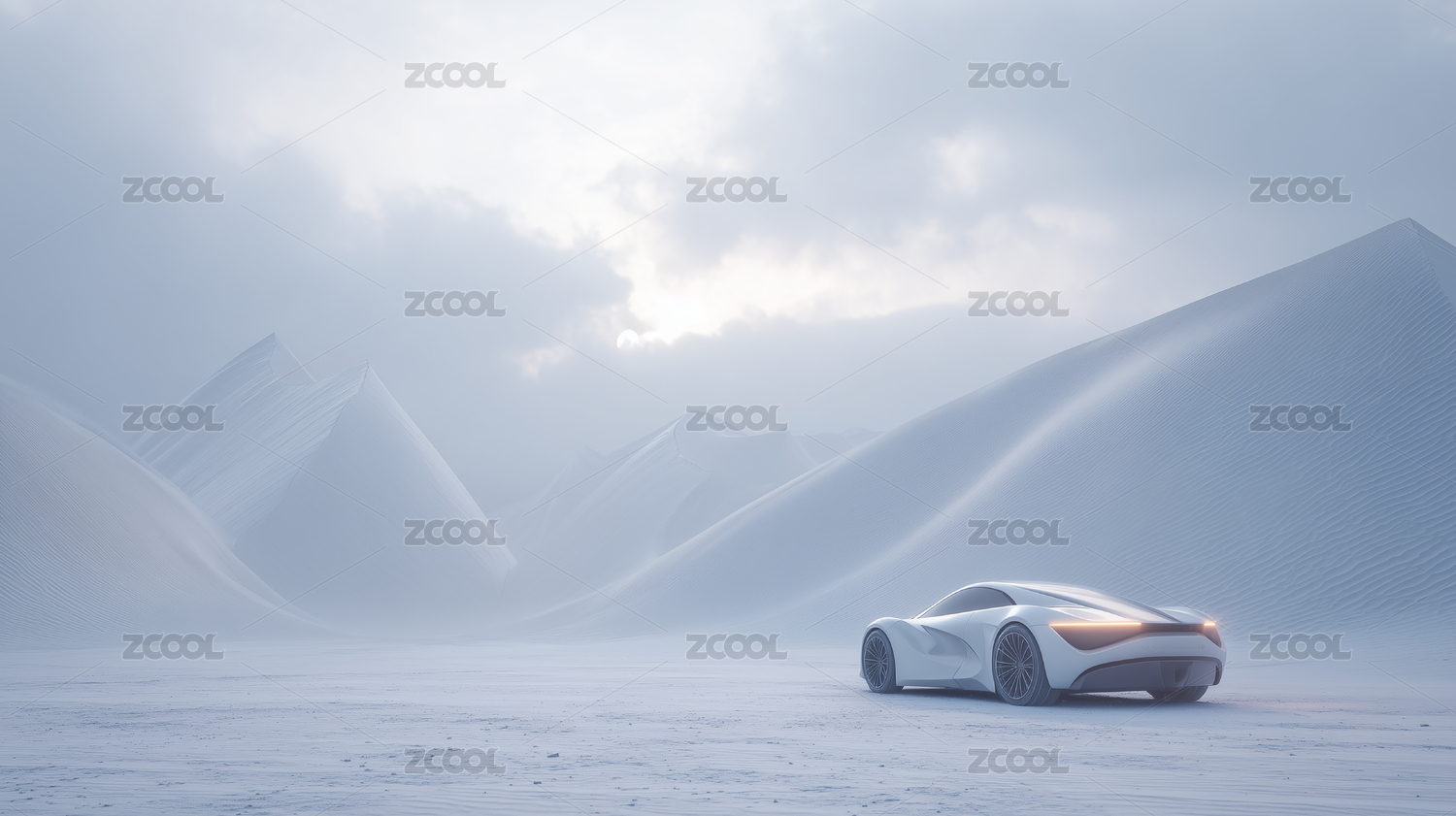 电动车,未来,驾驶,公路,无尽,沙丘,白色,极简,天空,阴天