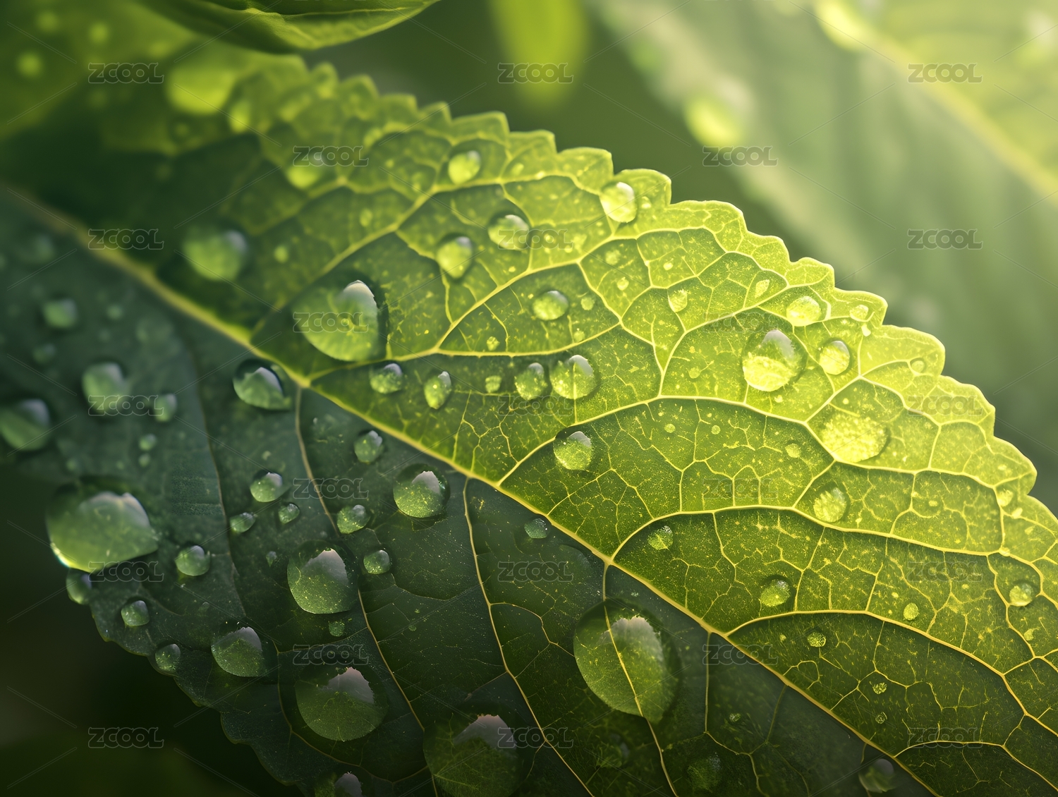 晶莹水珠绿叶
