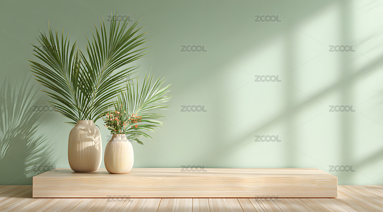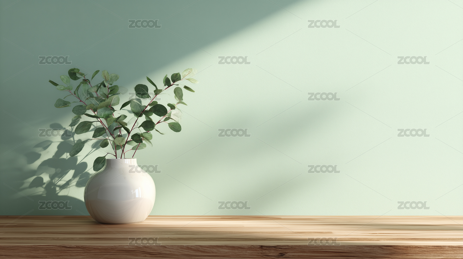 台面,木质,光滑,花瓶,白色,叶片,绿色,茂盛,阴影,植物