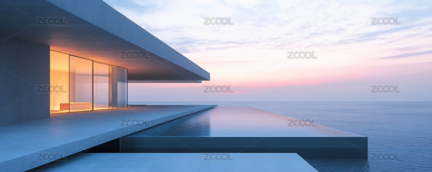 极简滨水建筑场景