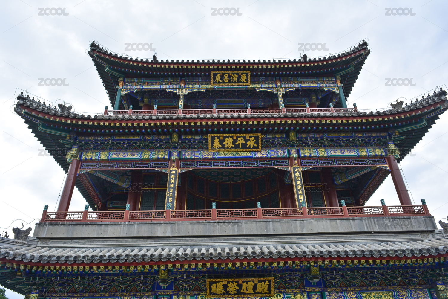 中国北京海淀颐和园德和园大戏楼正面侧面照