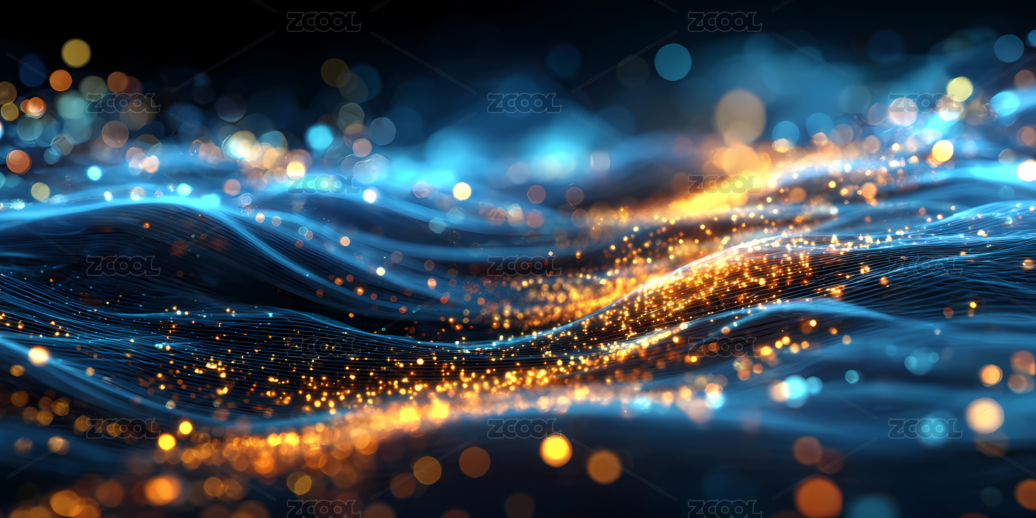 光波,科技,线条,光点,金色,蓝色,波浪,抽象,背景,流动