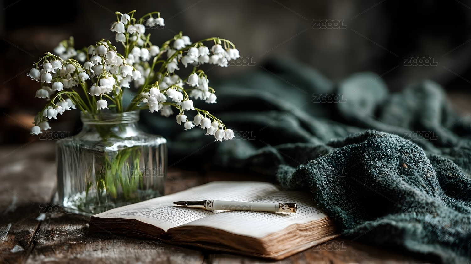 铃兰花与复古日记本