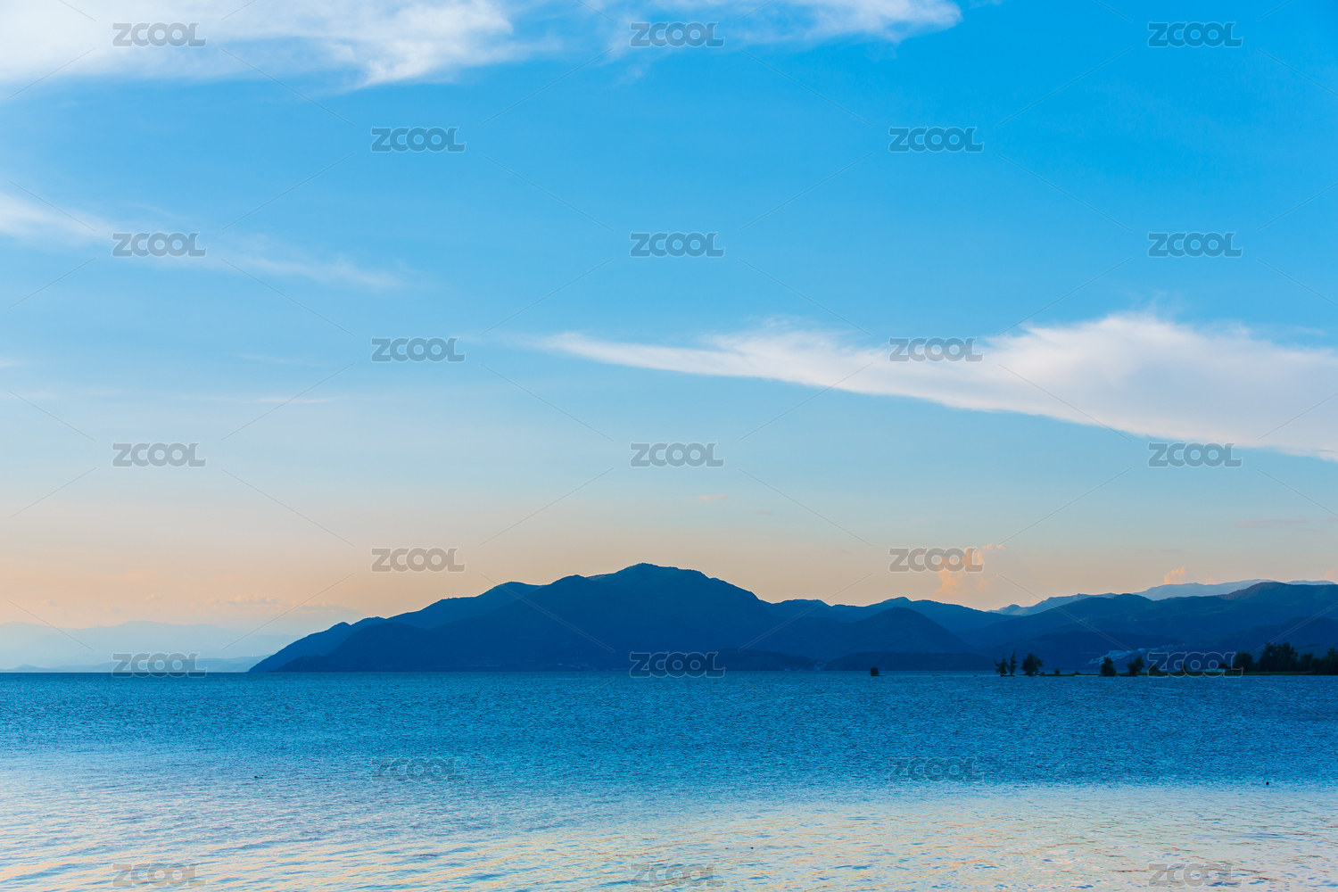 中国云南昆明滇池远山云彩壮阔水面景致