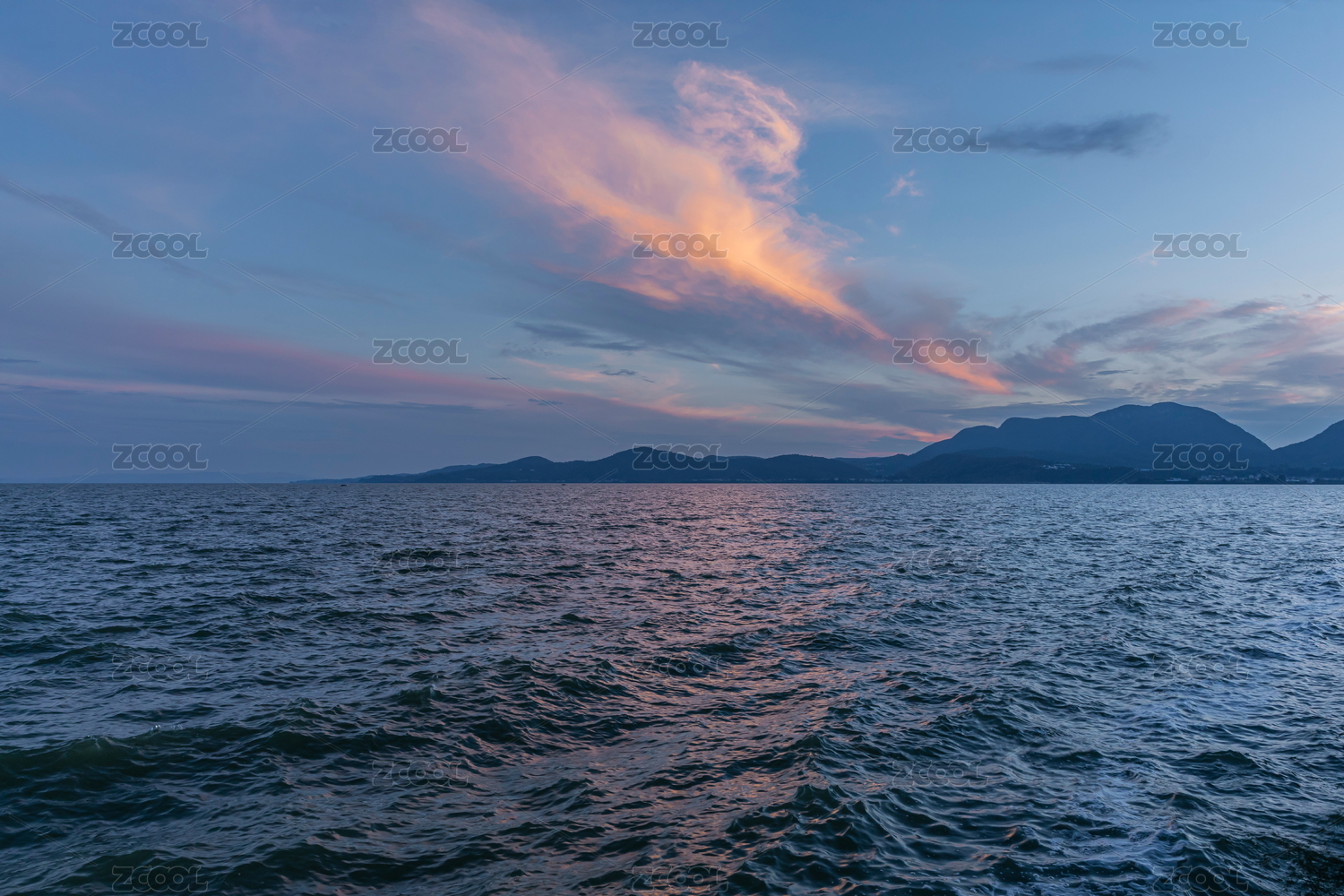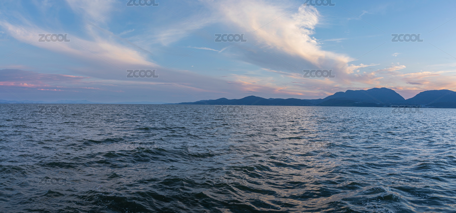 日本濑户内海日落,云,山