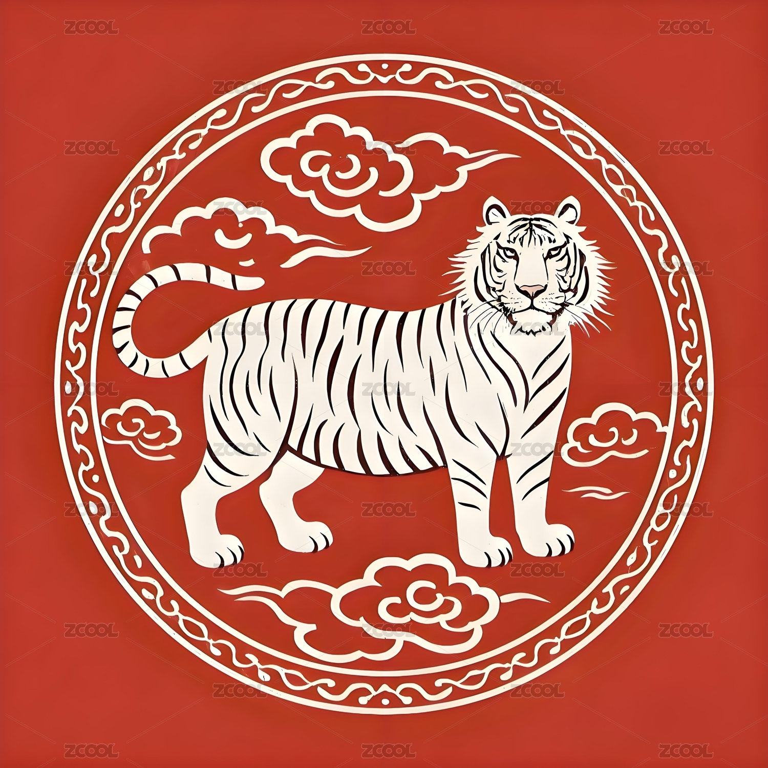 传统,卡通,神话,动物,吉祥,图腾,虎符,头像,插画,设计