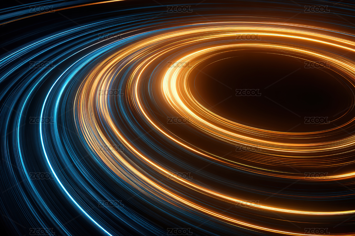 夜空穿梭的蓝金色光速线漩涡