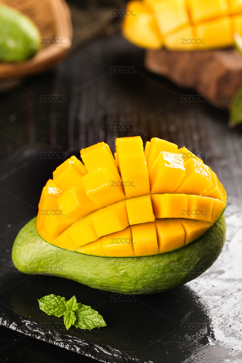 黑底上放着一堆越南进口玉芒和玉芒果肉