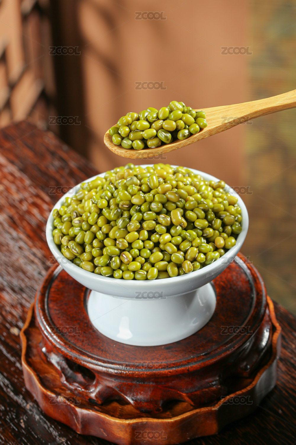 木底上的绿豆