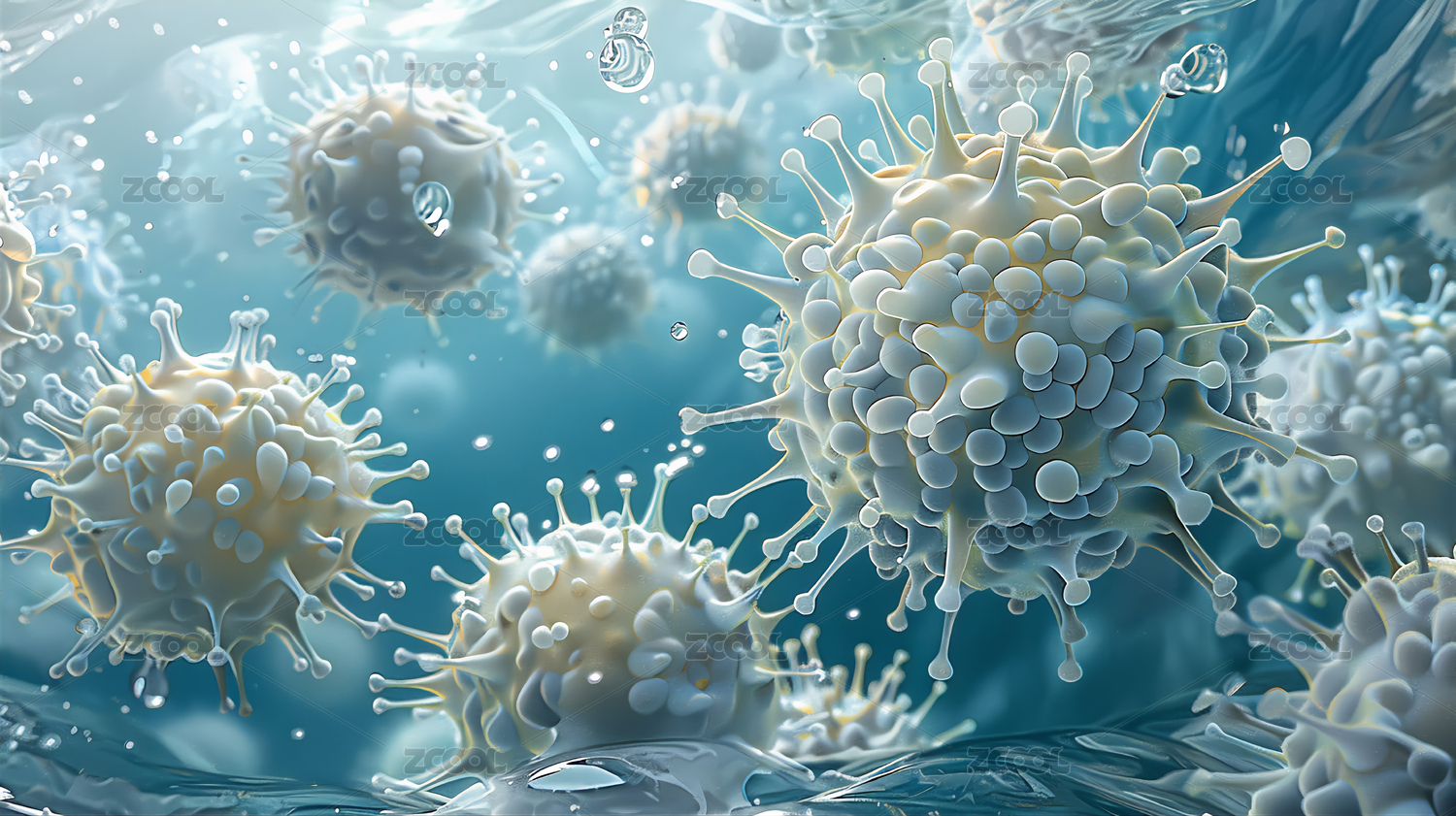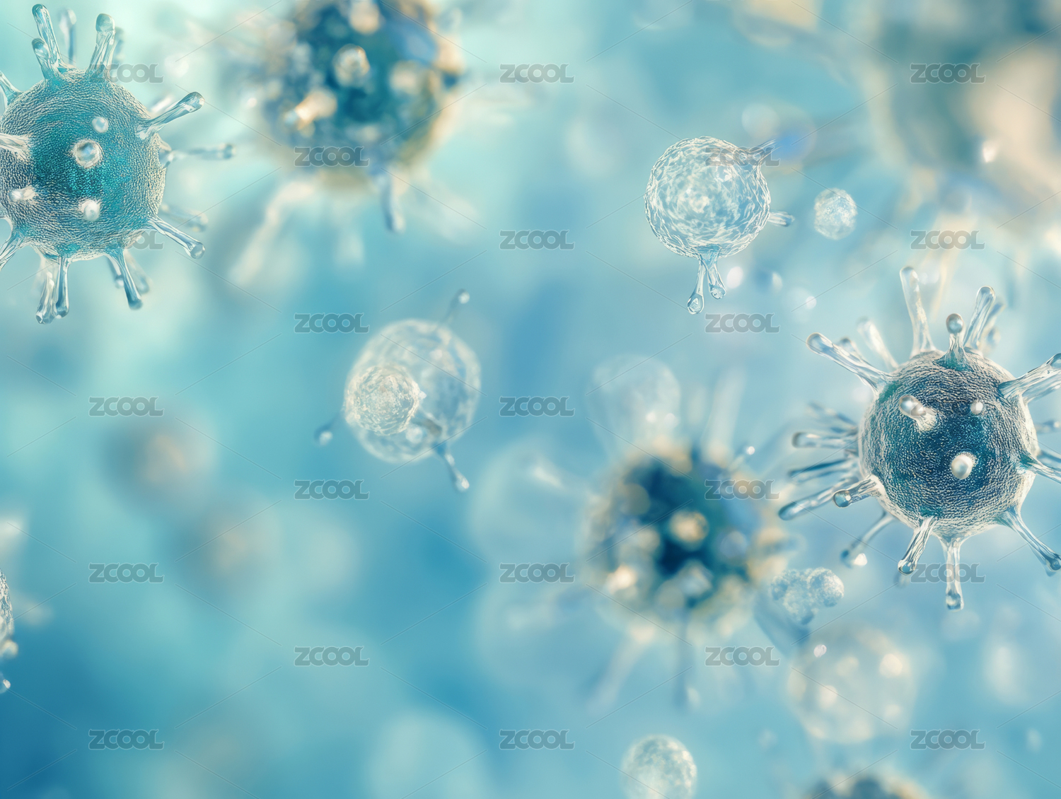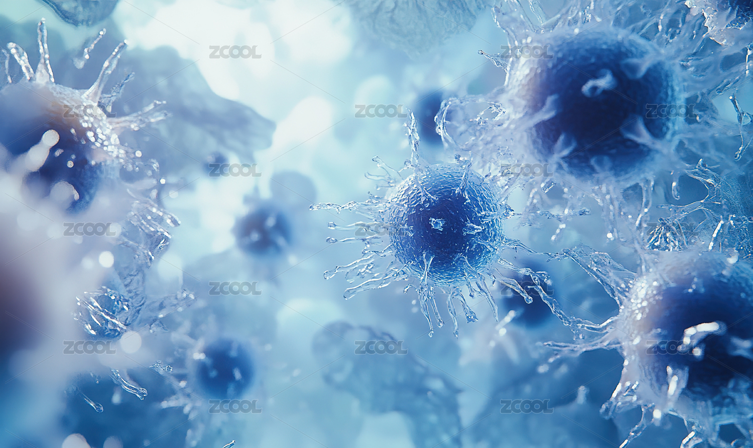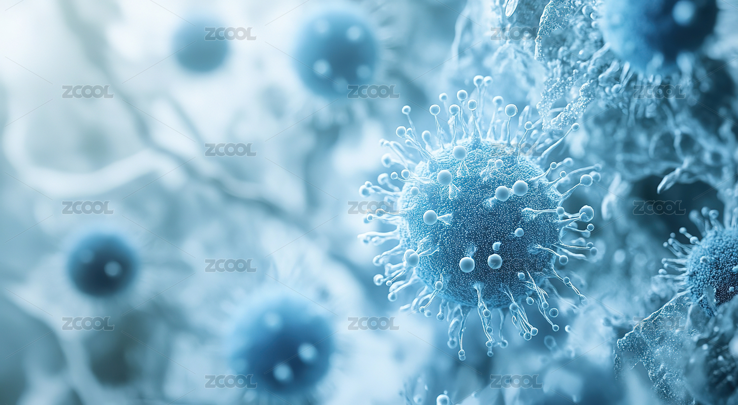 显微镜下的病毒世界蓝色病毒特写