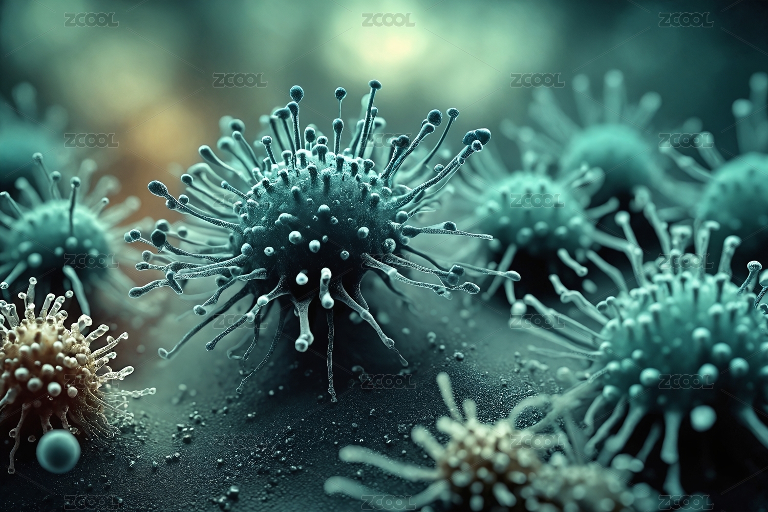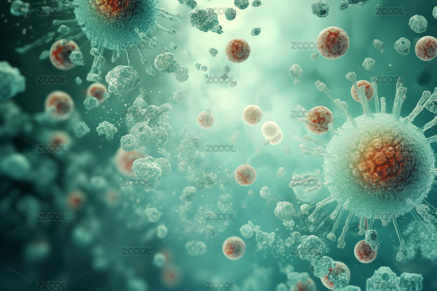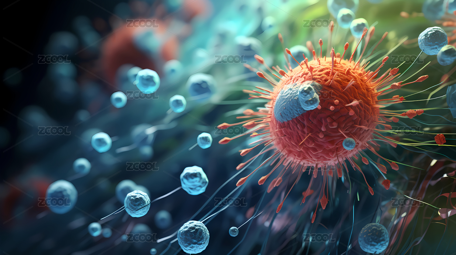 病毒细胞的微观视图
