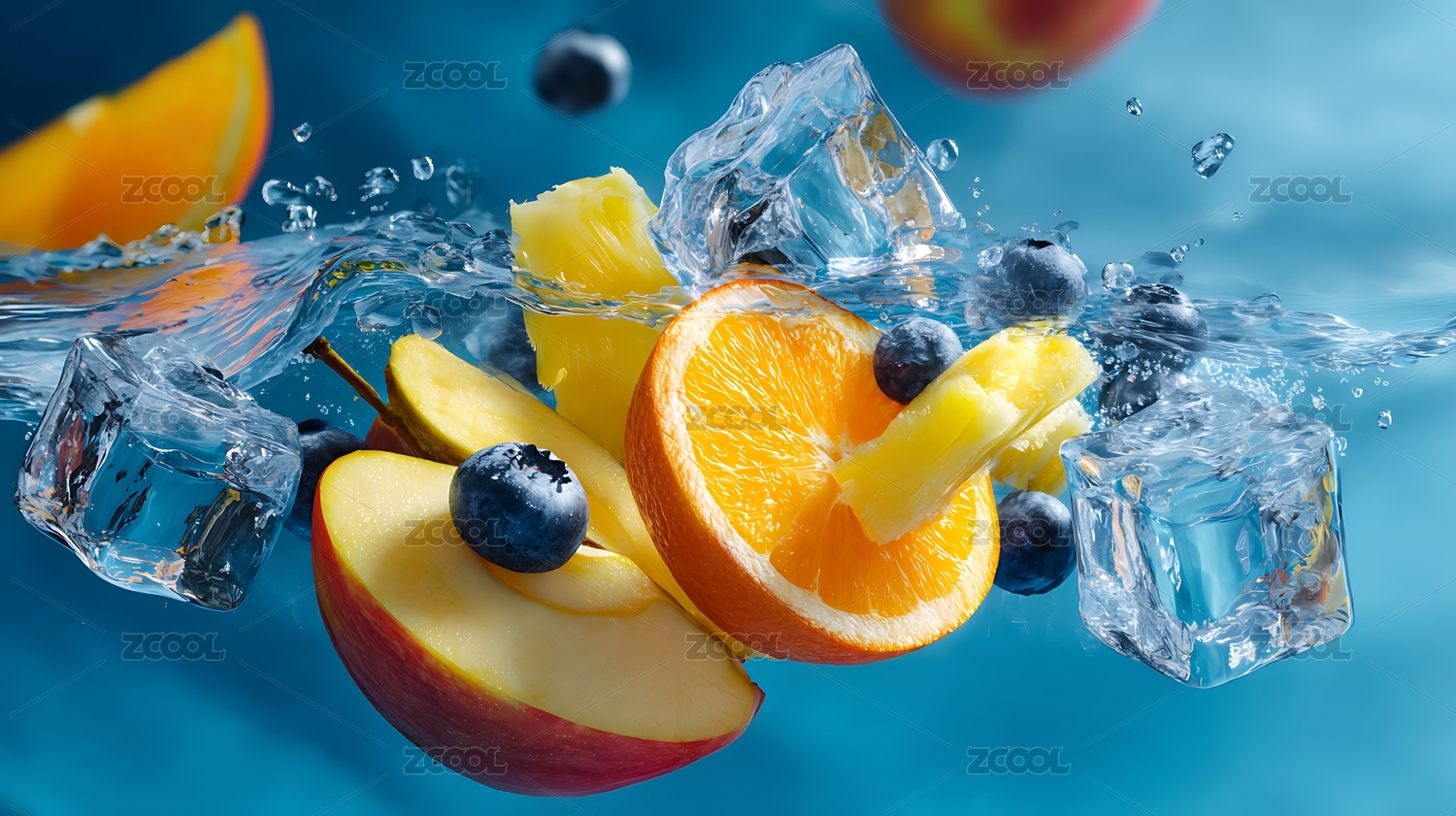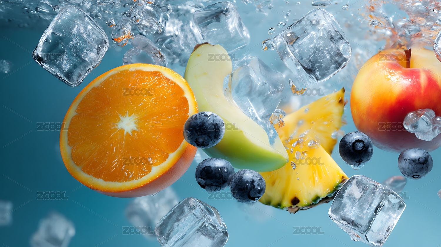 自然,背景,色彩,动态,水果,健康,透明,冰块,橙子,苹果