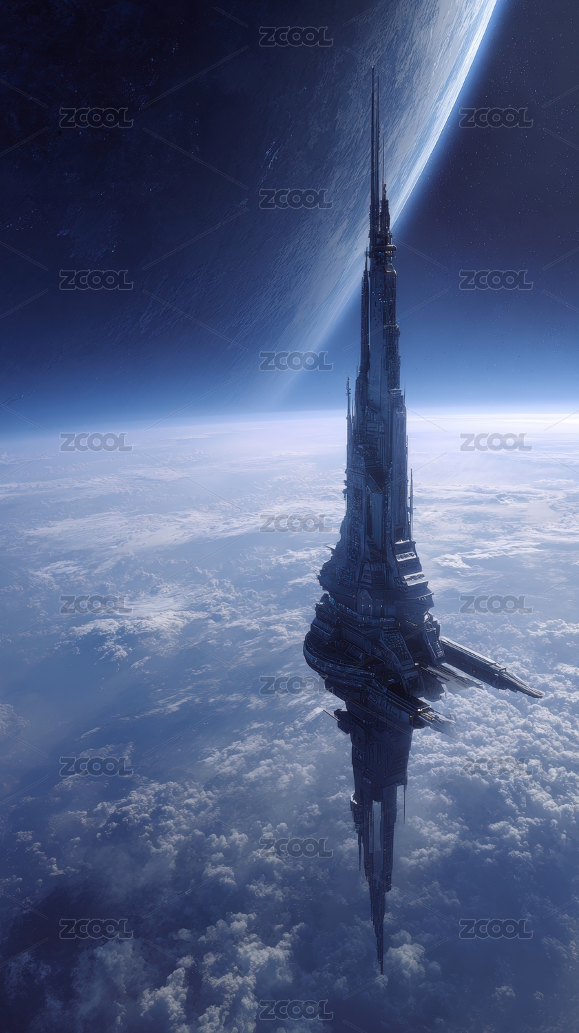 未来飞船悬浮于星球之上