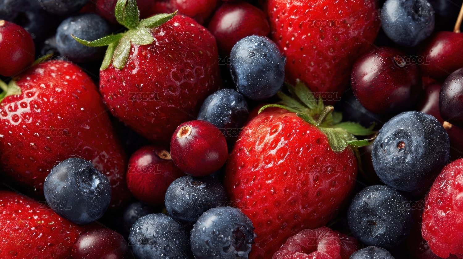 新鲜草莓蓝莓樱桃特写