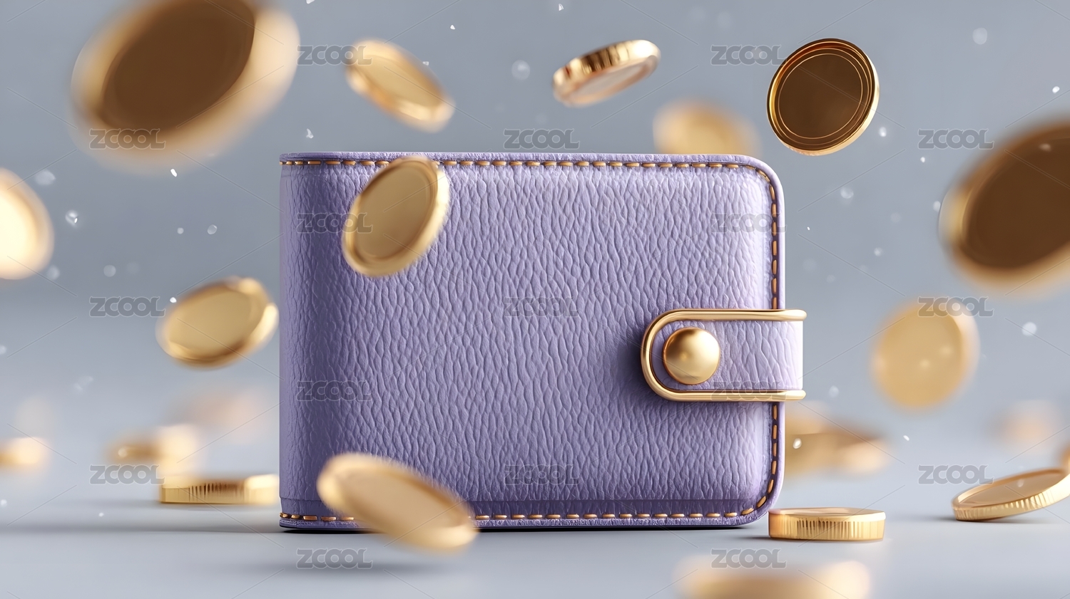 紫色钱包与金币飞舞