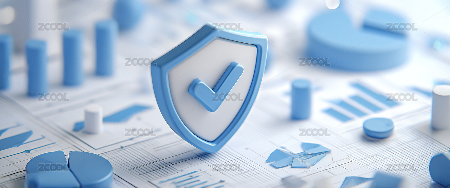 蓝色盾牌与图表象征数据安全