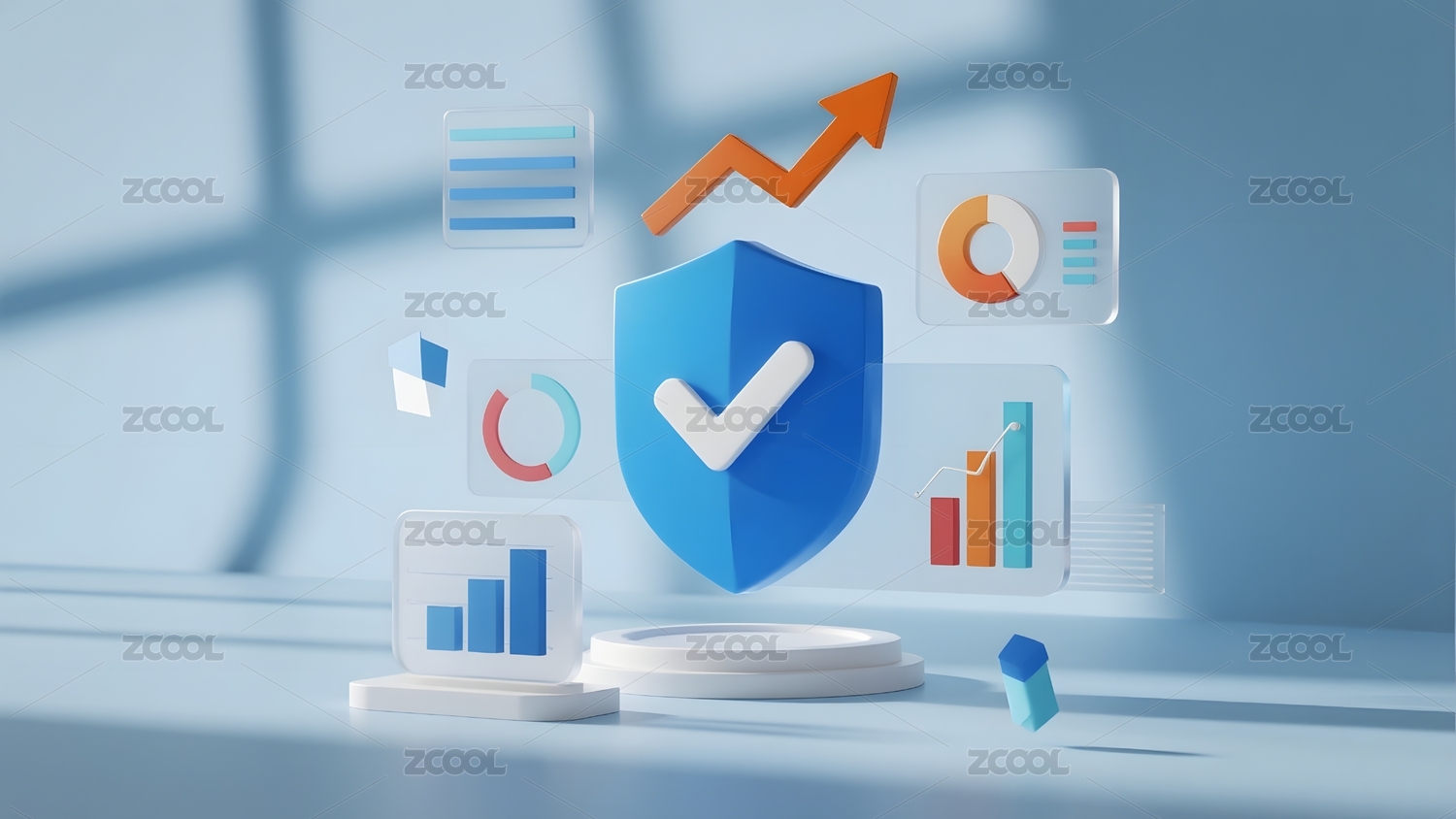 盾牌与柱状图渐变背景
