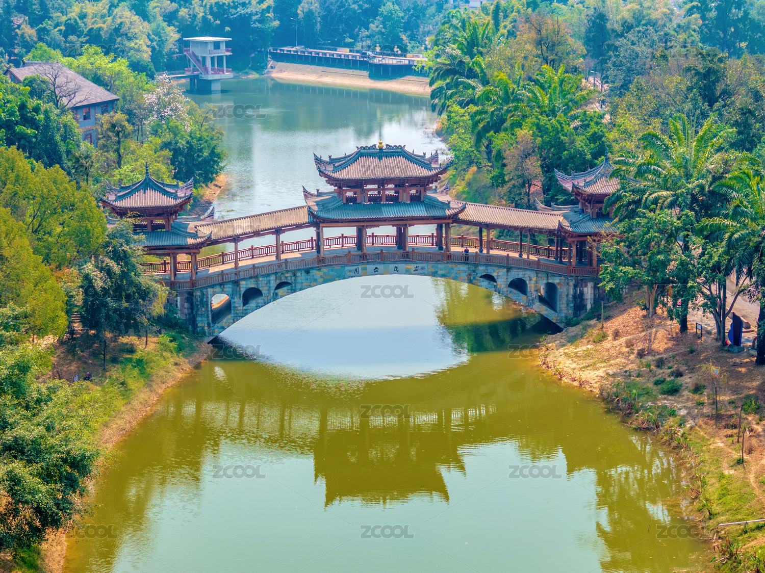 公园里的湖中拱桥